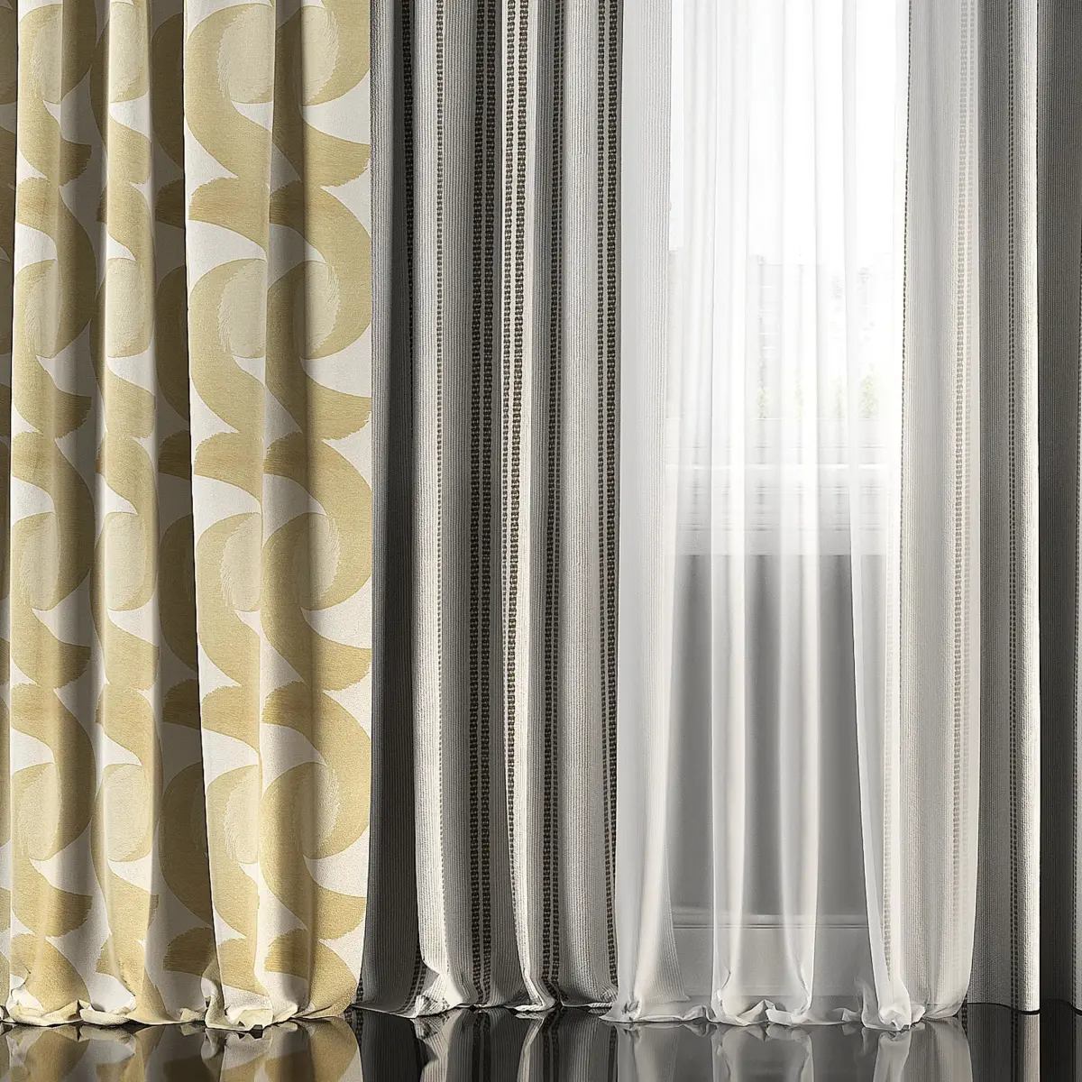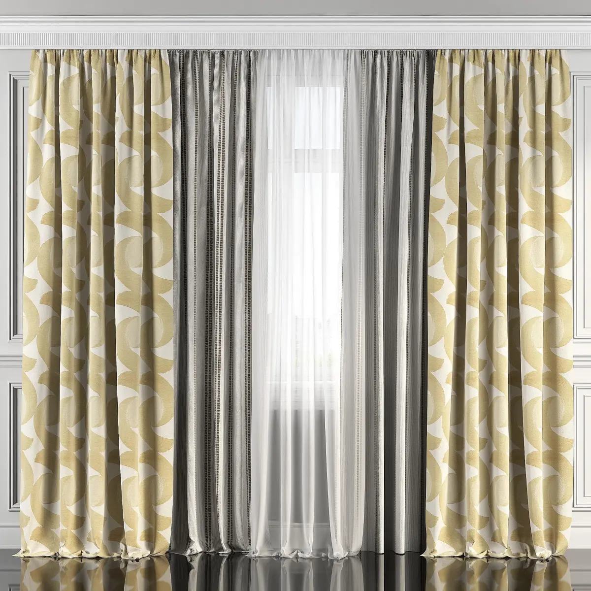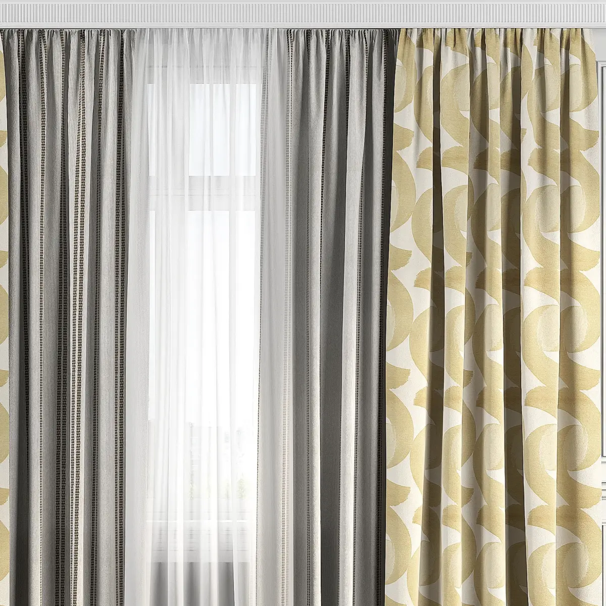 3D model of curtains and window. Curtains are suitable for any interior design of houses, apartments, bedrooms and living rooms.