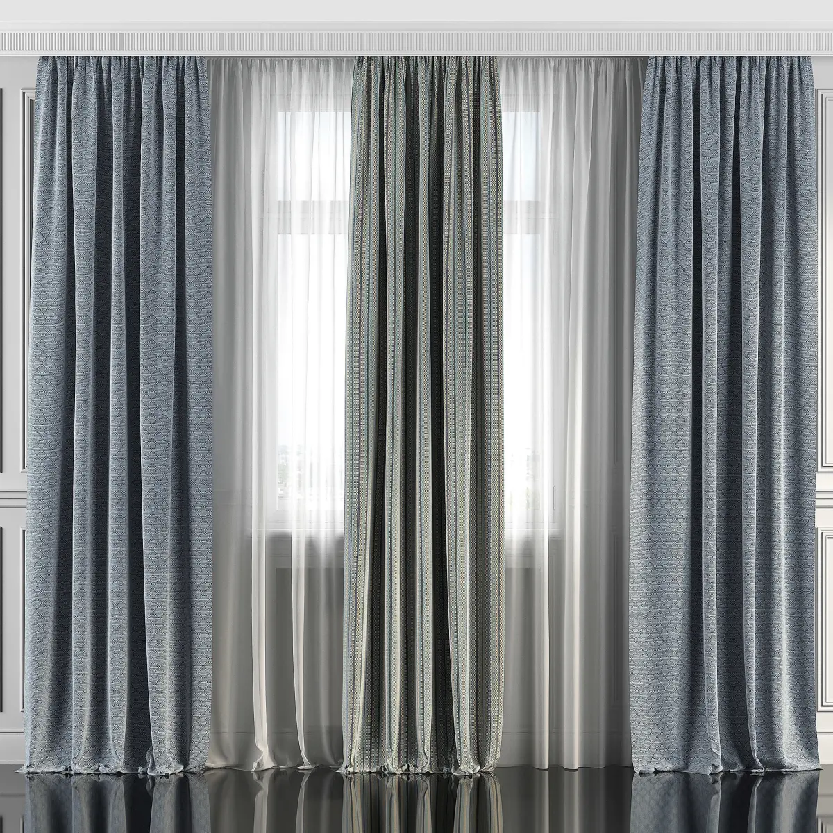 3D model of curtains and window. Curtains are suitable for any interior design of houses, apartments, bedrooms and living rooms.