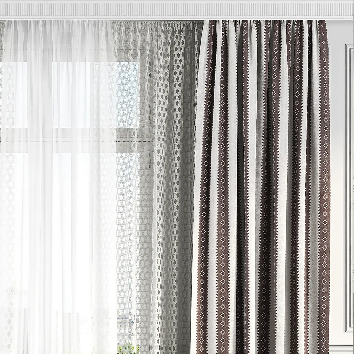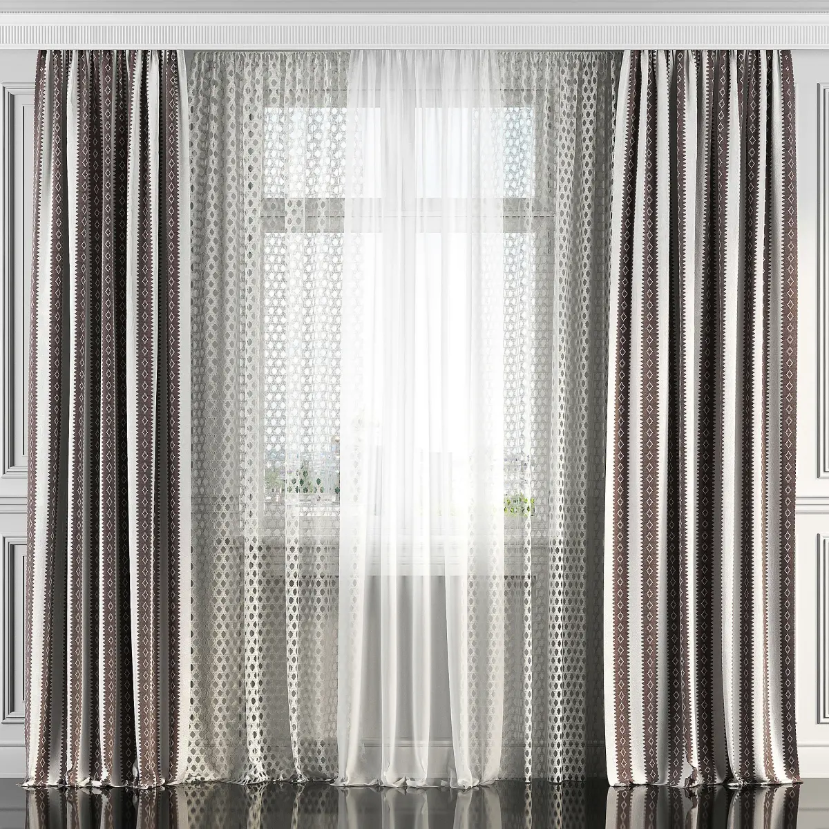 3D model of curtains and window. Curtains are suitable for any interior design of houses, apartments, bedrooms and living rooms.