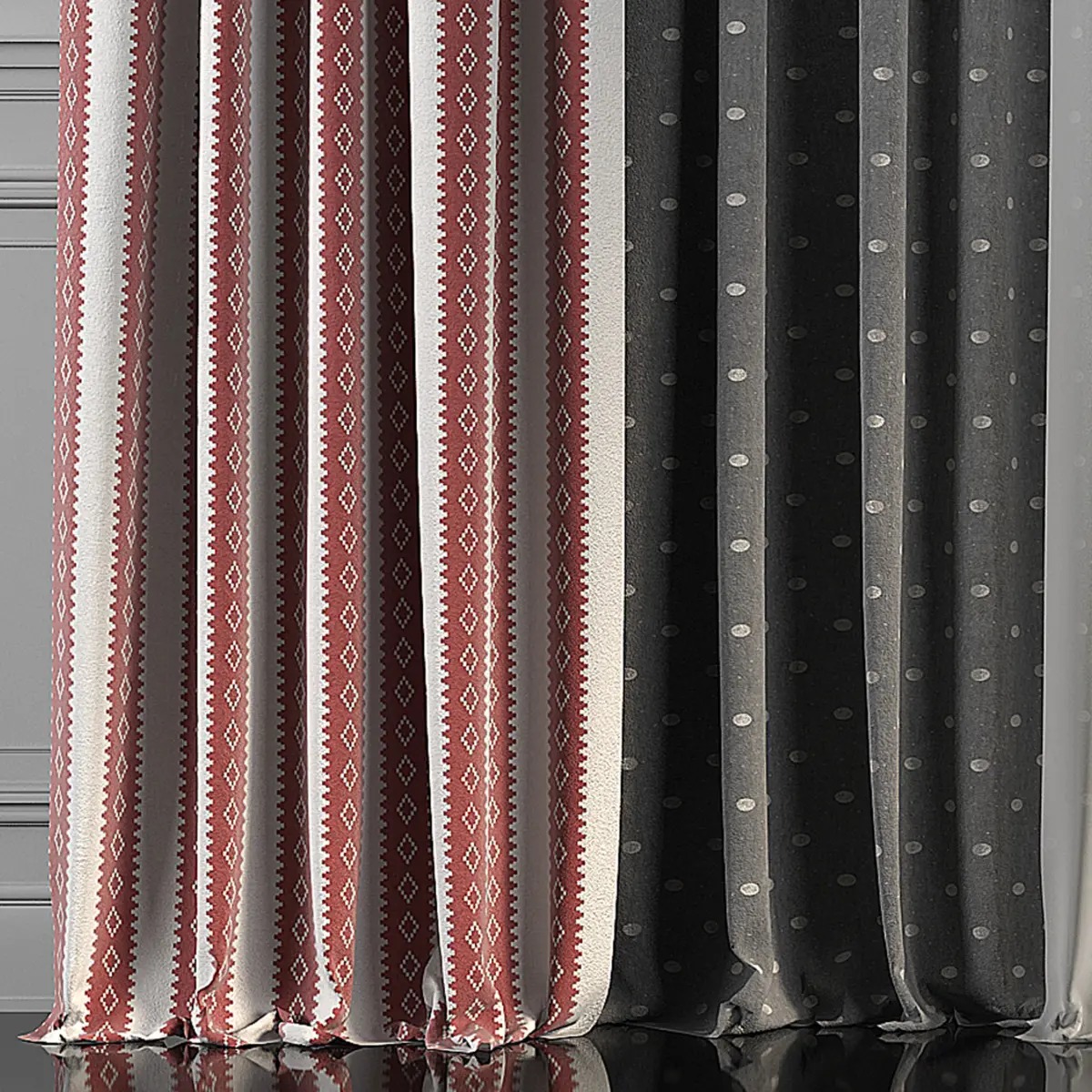 3D model of curtains and window. Curtains are suitable for any interior design of houses, apartments, bedrooms and living rooms.