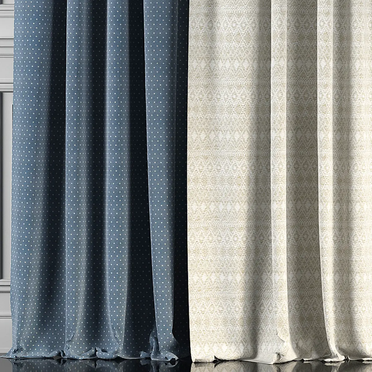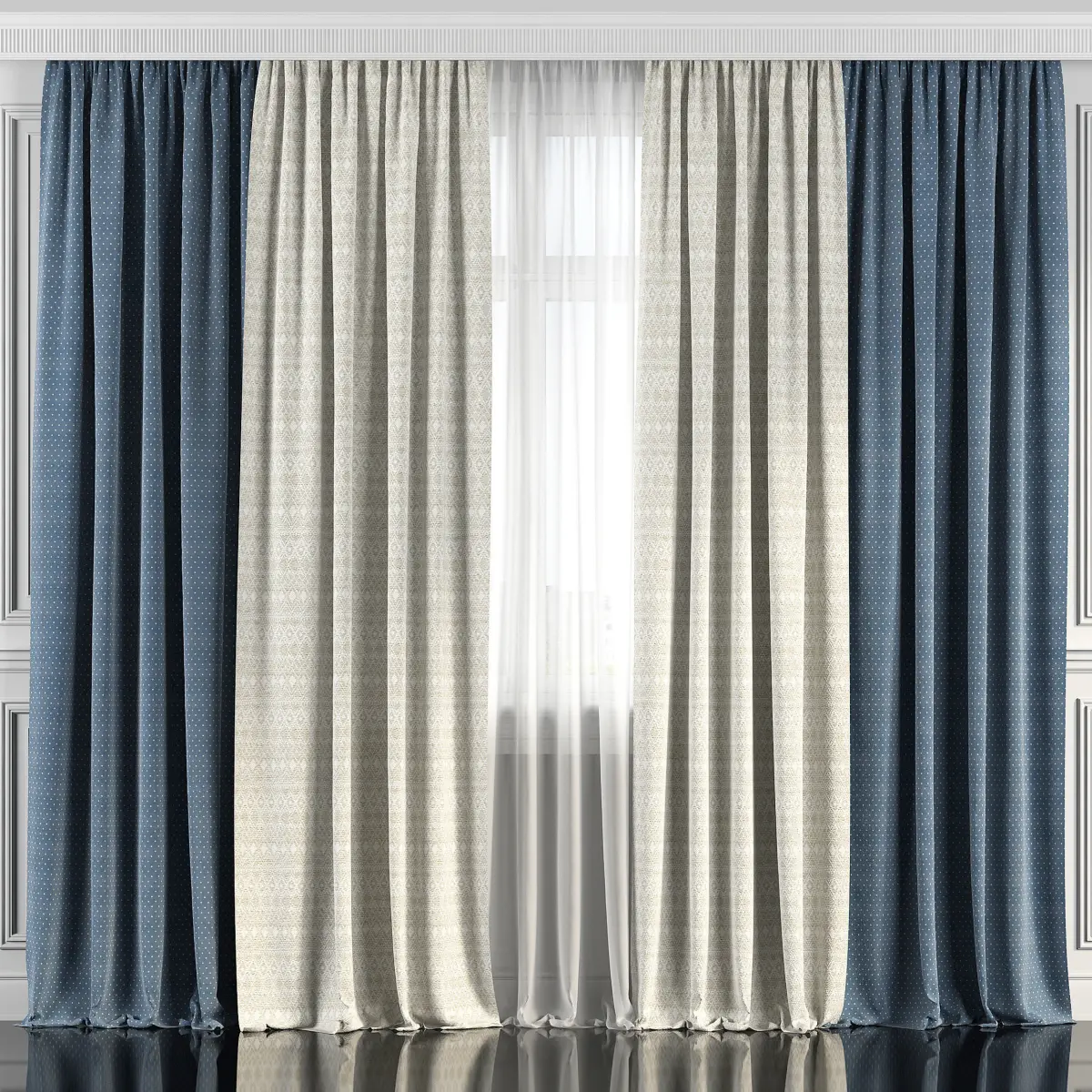 3D model of curtains and window. Curtains are suitable for any interior design of houses, apartments, bedrooms and living rooms.