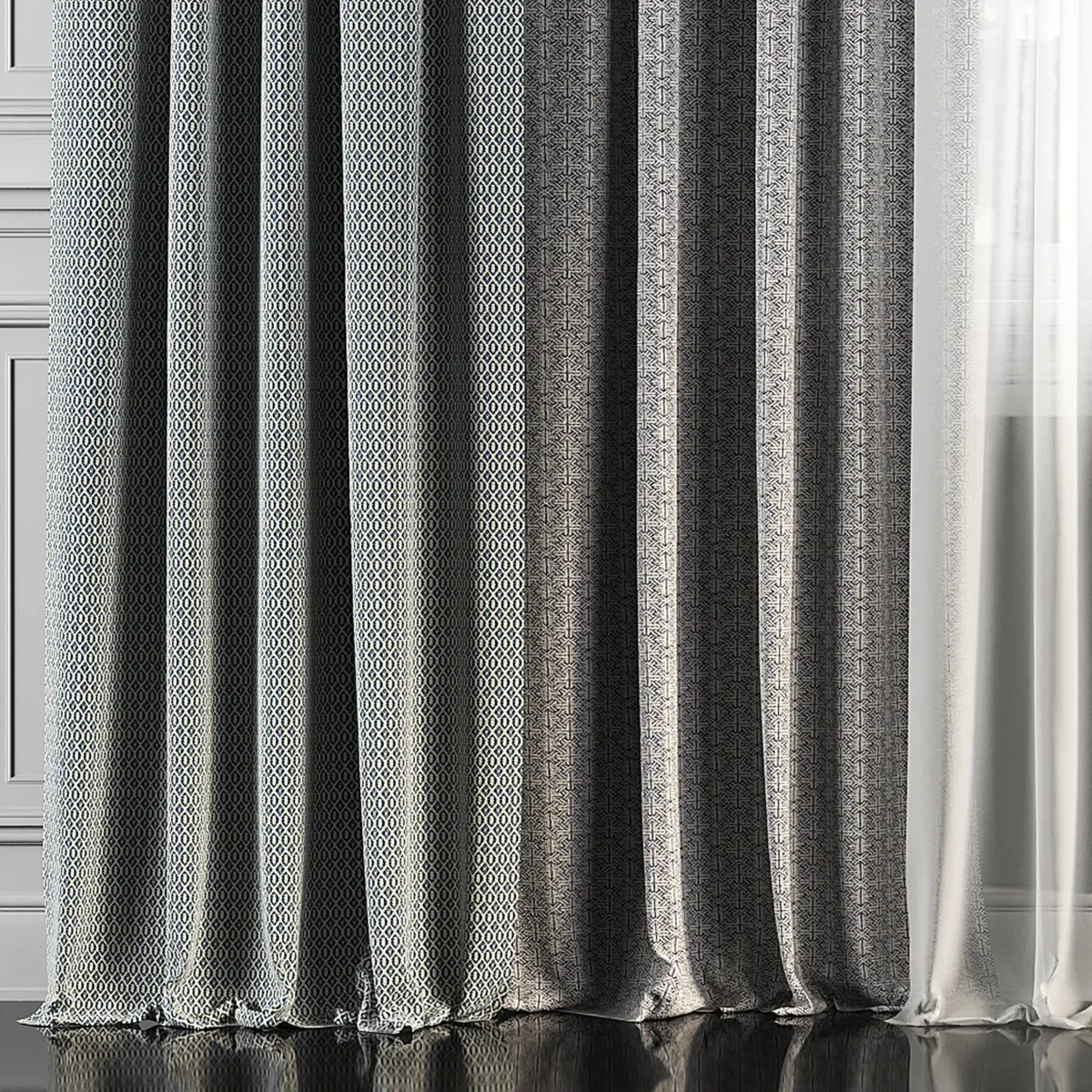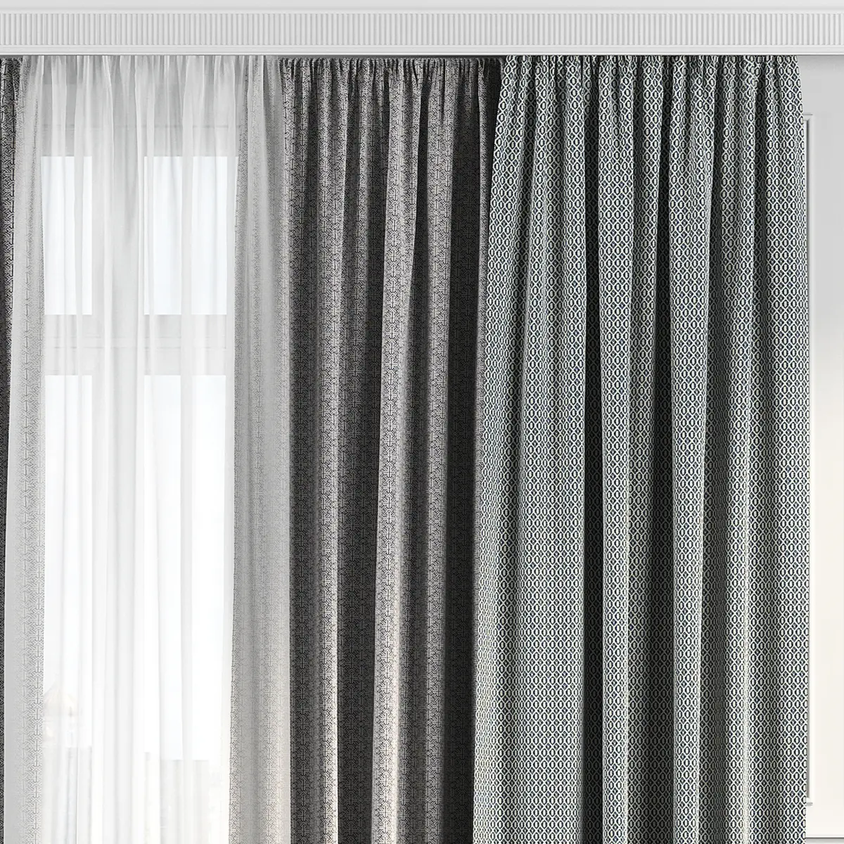3D model of curtains and window. Curtains are suitable for any interior design of houses, apartments, bedrooms and living rooms.