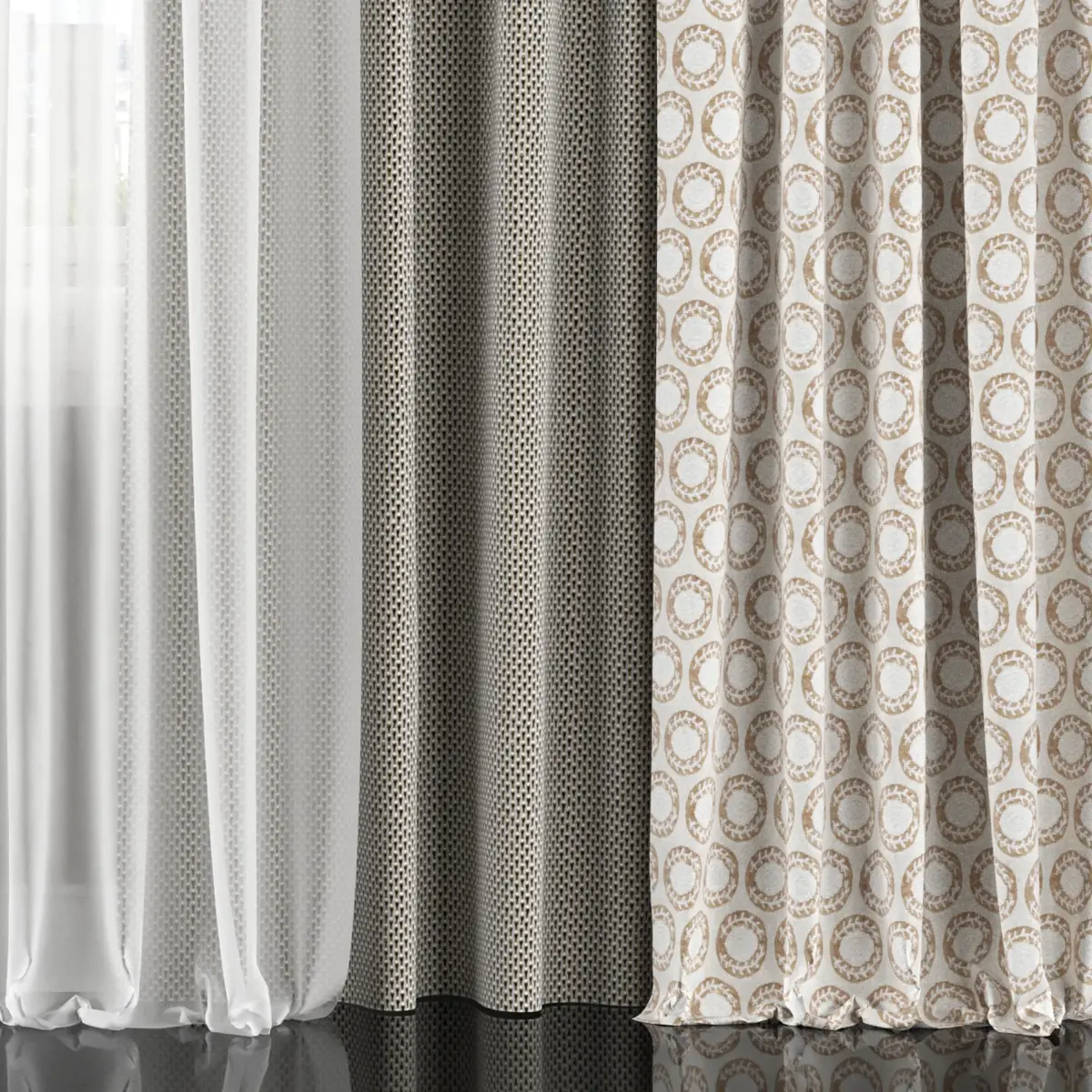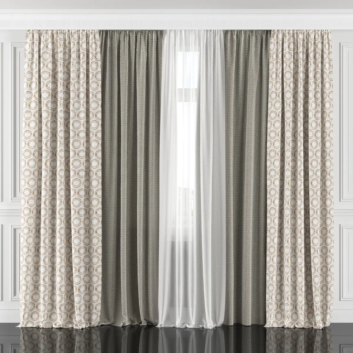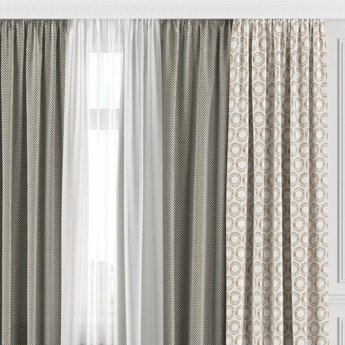 3D model of curtains and window. Curtains are suitable for any interior design of houses, apartments, bedrooms and living rooms.
