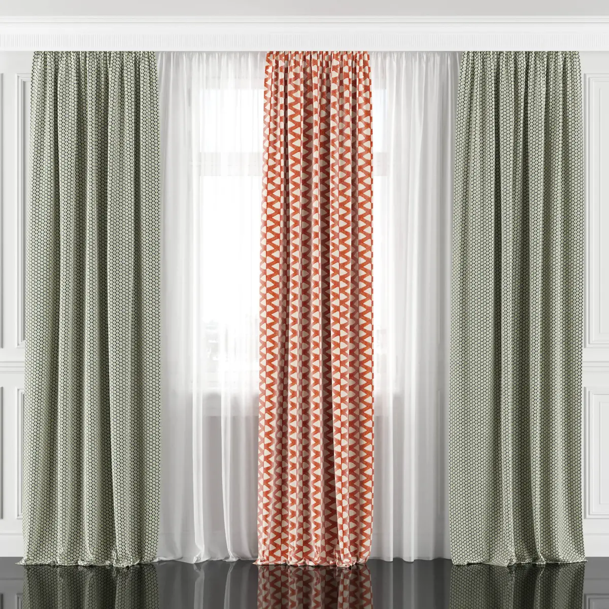 3D model of curtains and window. Curtains are suitable for any interior design of houses, apartments, bedrooms and living rooms.