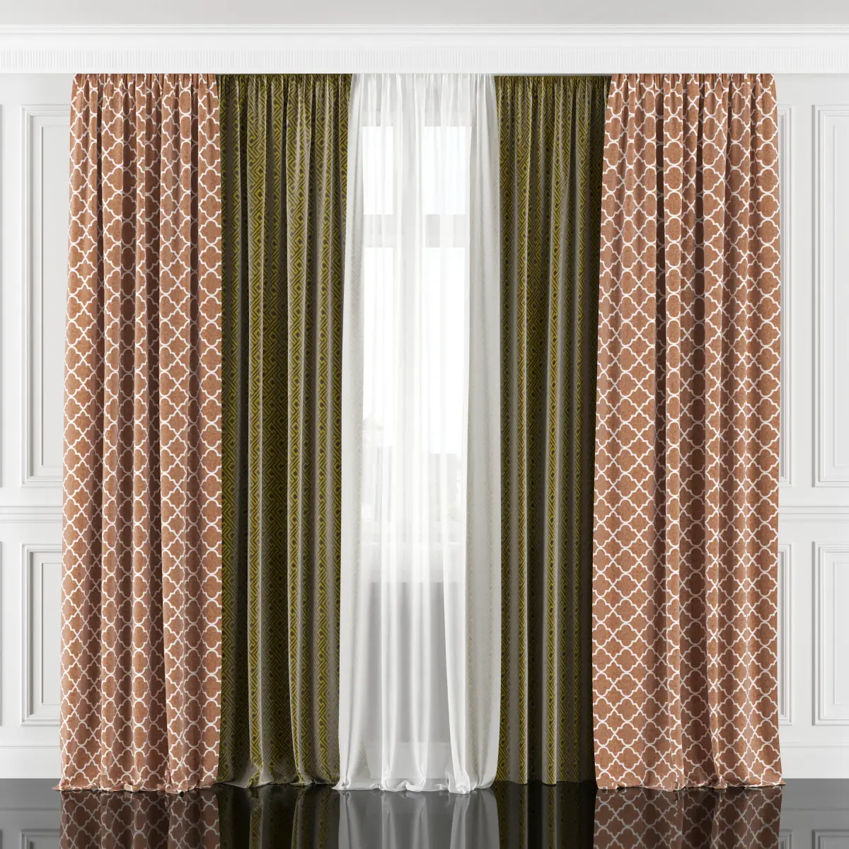3D model of curtains and window. Curtains are suitable for any interior design of houses, apartments, bedrooms and living rooms.