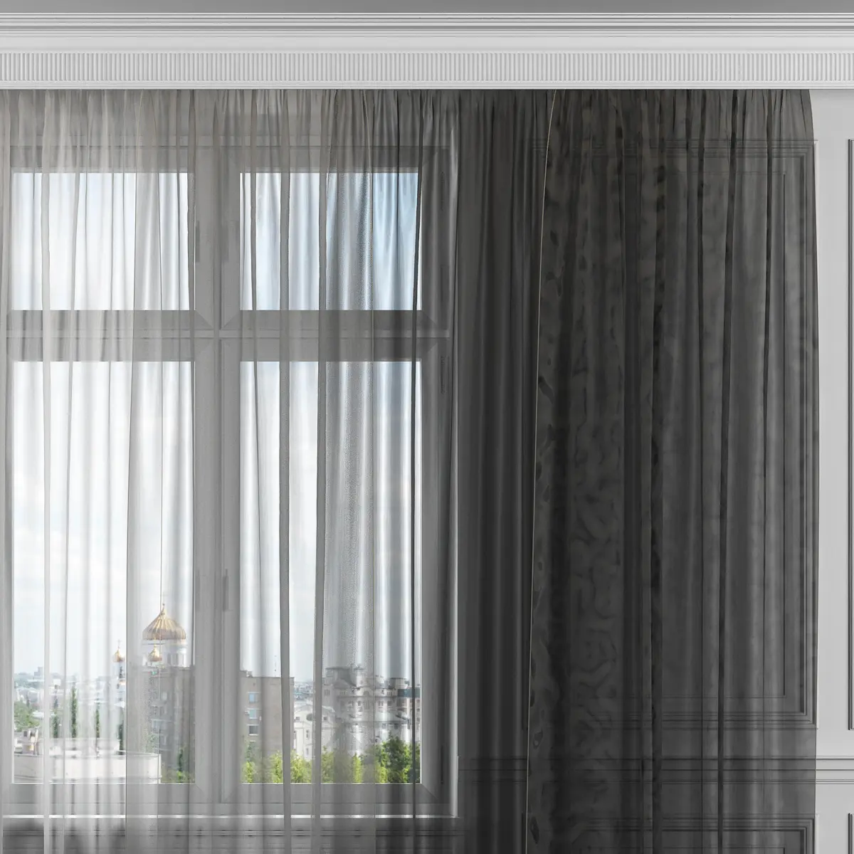 3D model of curtains and window. Curtains are suitable for any interior design of houses, apartments, bedrooms and living rooms.