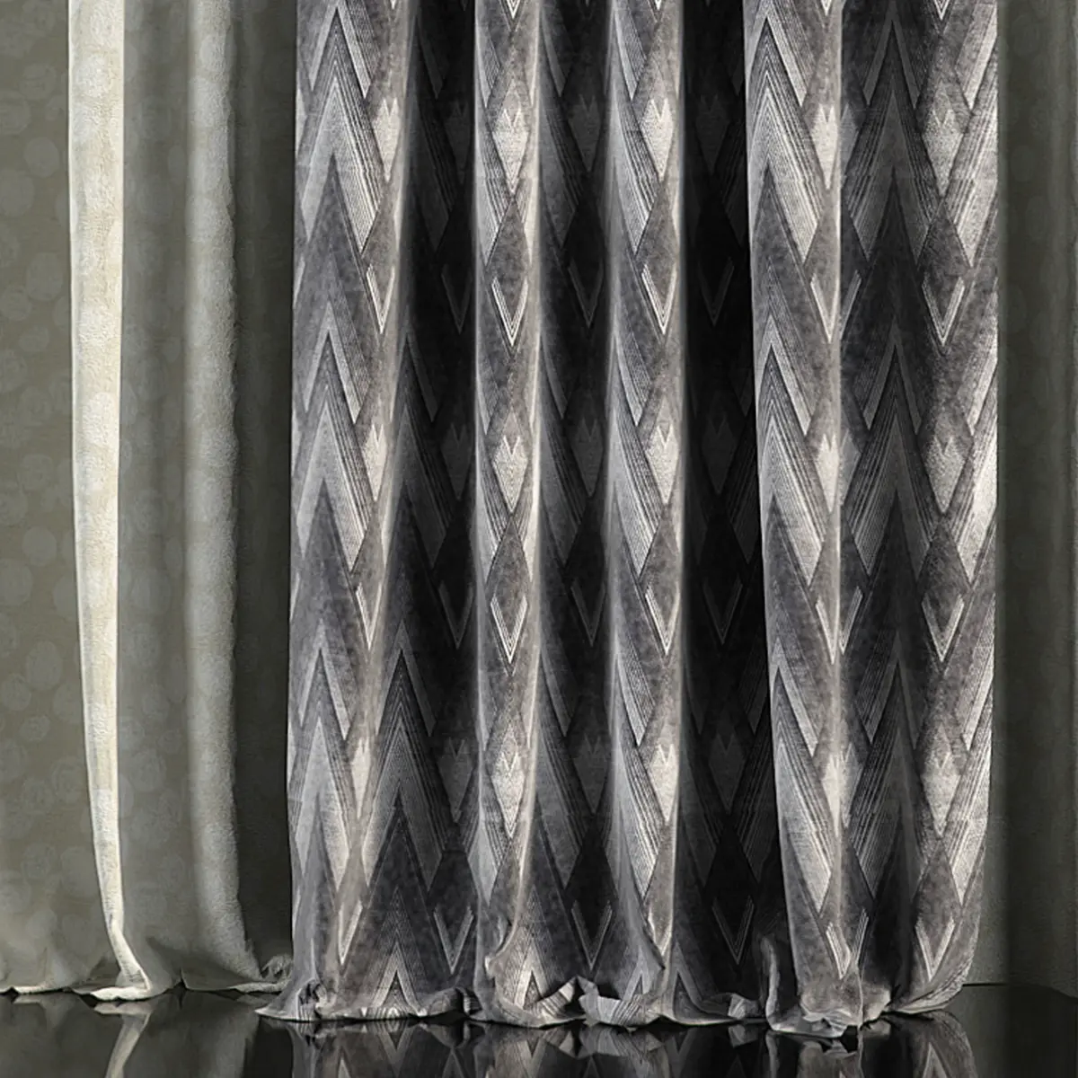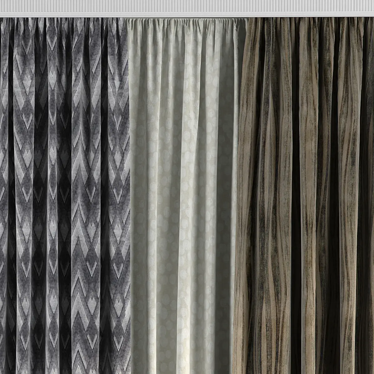 3D model of curtains and window. Curtains are suitable for any interior design of houses, apartments, bedrooms and living rooms.
