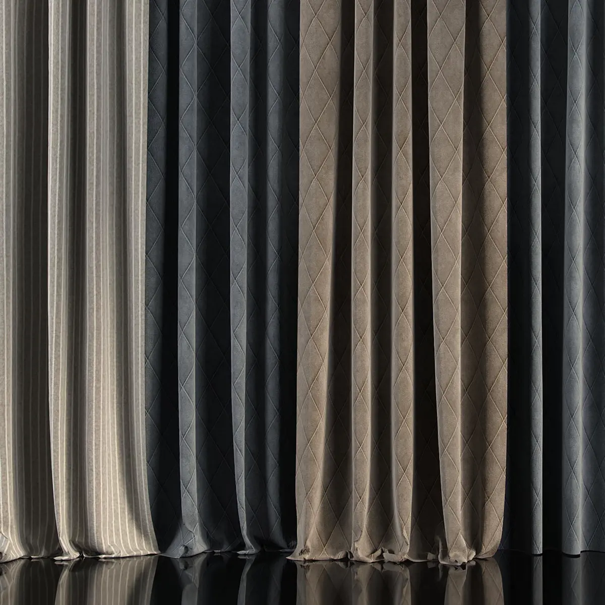 3D model of curtains and window. Curtains are suitable for any interior design of houses, apartments, bedrooms and living rooms.