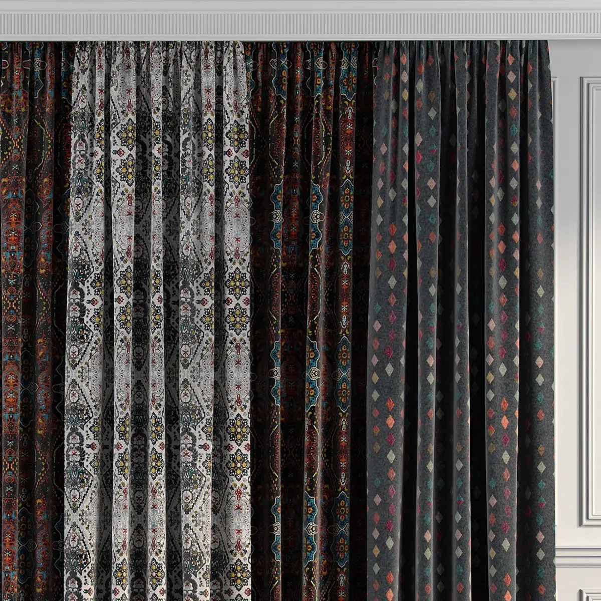3D model of curtains and window. Curtains are suitable for any interior design of houses, apartments, bedrooms and living rooms.