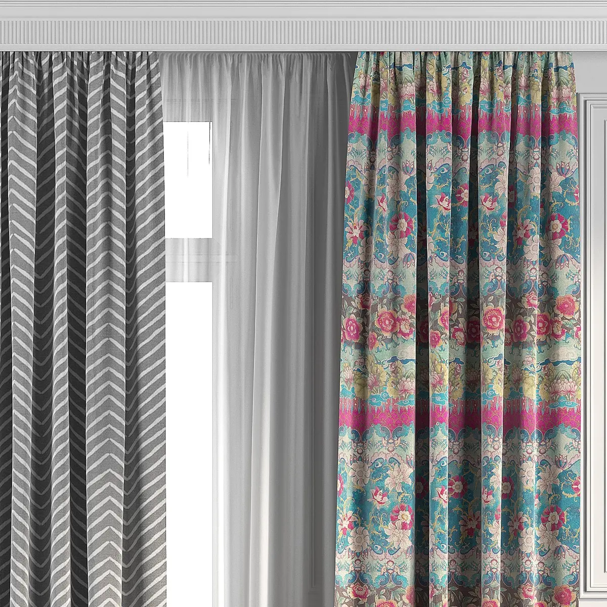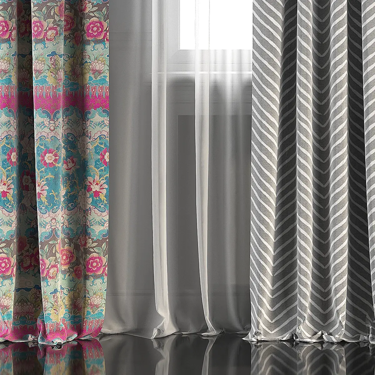 3D model of curtains and window.