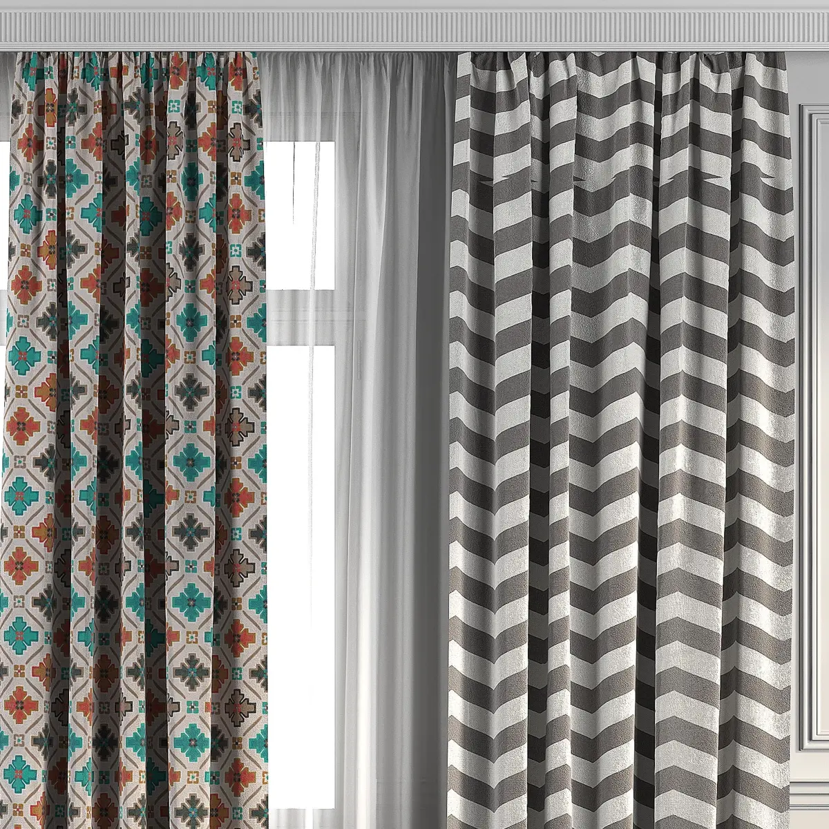 3D model of curtains and window.