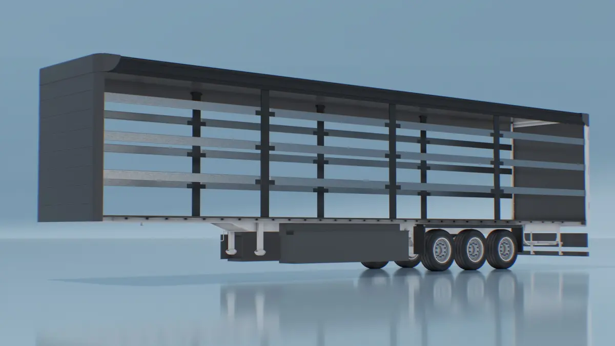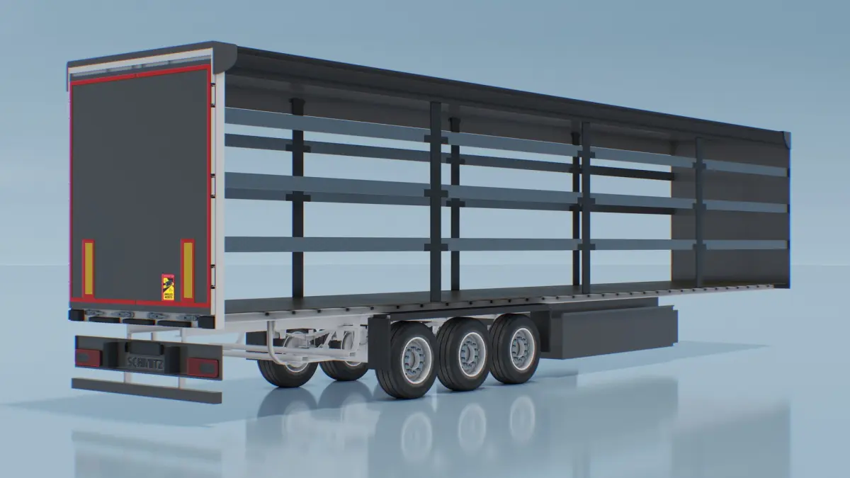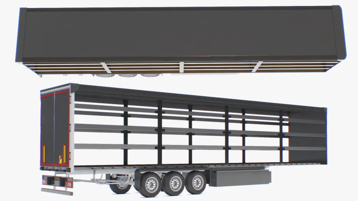Curtain Trailer Without Canvas Black is a high quality, photo real 3d model that will enhance detail and realism to any of your rendering projects. The model has a fully textured, detailed design that allows for close-up renders, and was originally modeled in 3ds Max 2020 and rendered with V-Ray. Renders have no postprocessing!