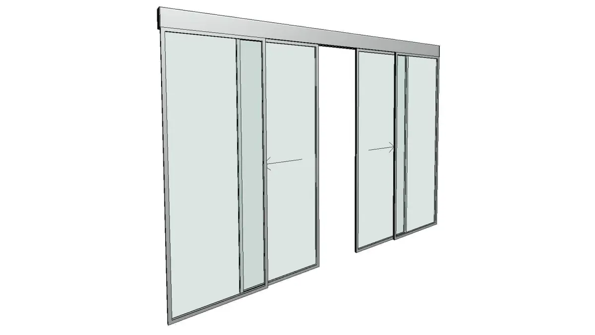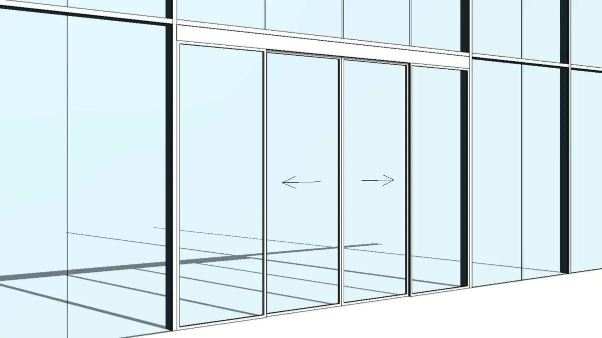 This is a revit family for a curtain wall panel automatic double sliding door . Family is fully parametric. Model can replace any curtain wall panel with a double automatic sliding door. Width and height of the door is automatically inherited from the curtain wall panel size. Single parameter to show the sliding door open or closed with any value between 0% and 100%.