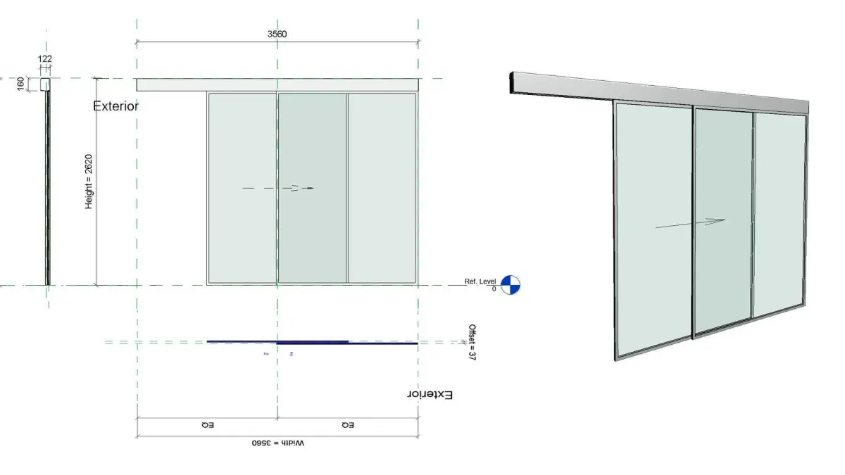 Fully Parametric Curtain Wall Automatic Single Sliding Door