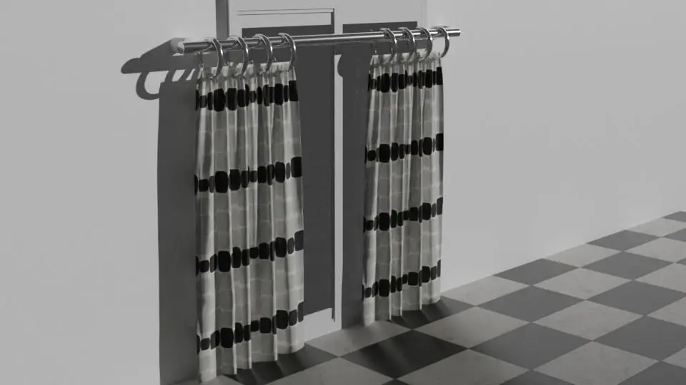 A Curtain With Metal Bars Made In Blender 2.9With UV Unwrapped Textures4k PBR TextureHigh Quality TopologyWith Normal Map And Color MapsBest For Architecture,Games And For VFX