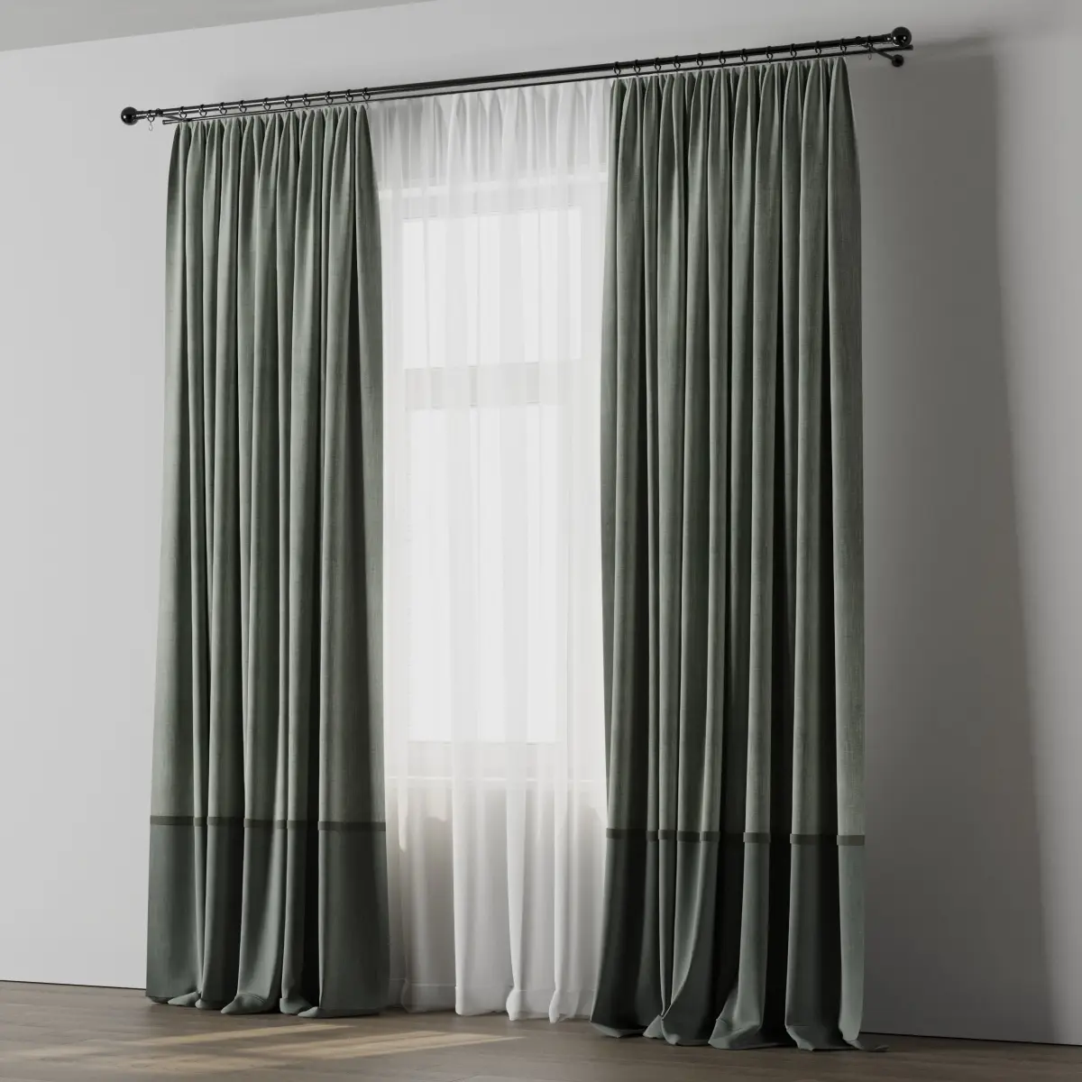 curtain with rod 06 Green Curtain Low-poly 3D model