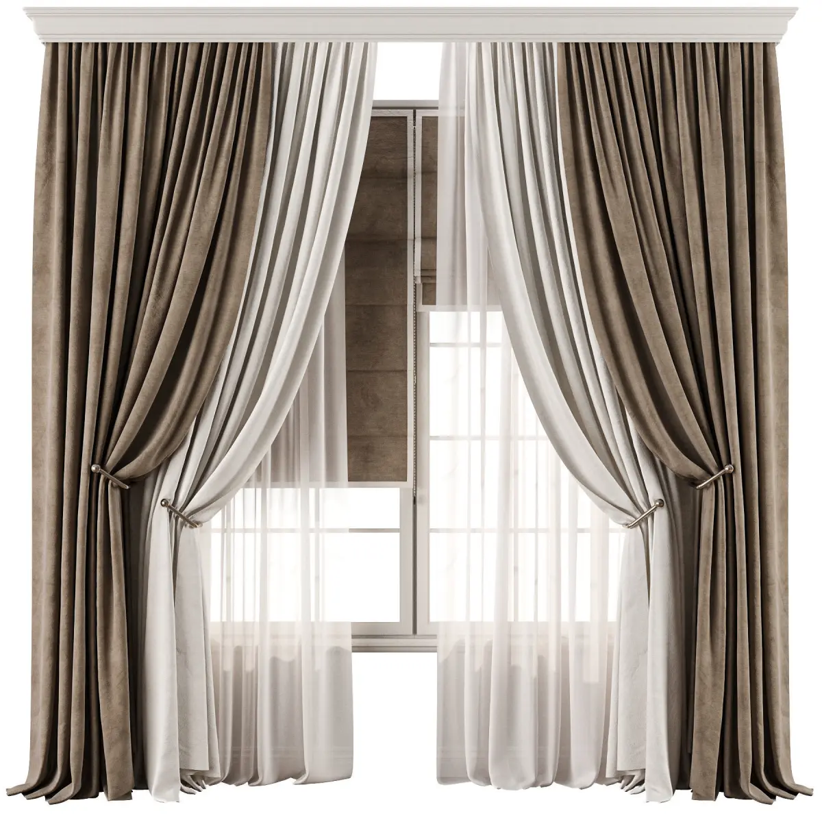 Description:This luxurious drapery set features a double-layer design with velvet curtains, delicate sheer panels, and a functional Roman shade. The velvet layer adds sophistication, the sheer panels provide soft light diffusion, and the Roman shade ensures enhanced light control. The primary colors include a stunning lavender and cream combination, with two optional variations in green and brown tones. Perfect for modern and classic interiors, this set is ideal for living rooms, bedrooms, or dining areas.The turbosmooth modifier is partially applied to the model (display in the viewport - 0 iterations, on the render - 1 iteration). There is no modifier in the OBJ file.