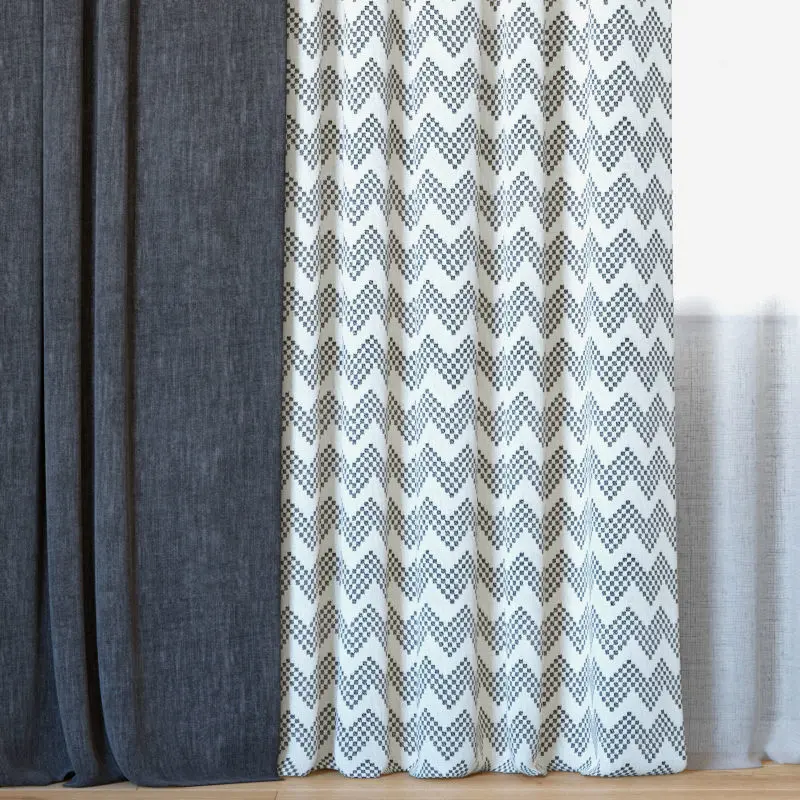 The archive has:4 blackout curtains with two types of fabric Reilly Gray Chevron and Ovington Gray;Semi-transparent tulle;All textures;MAX 2013 (V-Ray 3.60);FBX_V-ray;