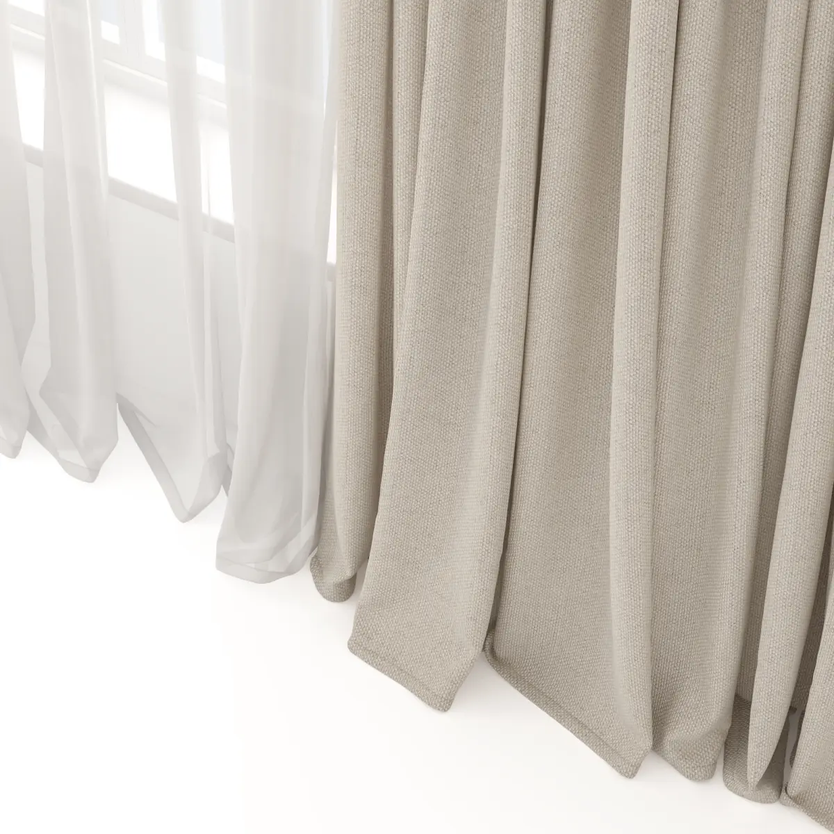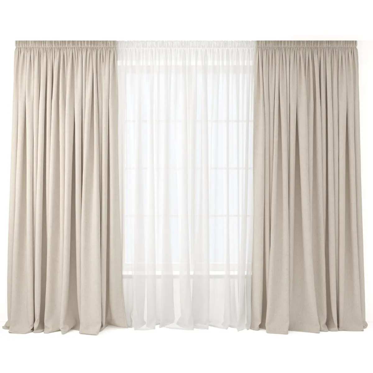 The file contains curtains and a window. The window is made in a simplified manner.Overall size length 3550 mm, height 2870 mm.The size of the outer panel is 1150 x 2870 mm.Tulle size 1880 x 2870 mm.Window size 1600 x 2200 h.Preview of V-Ray 6, 3ds max 2023In the Corona file, materials are converted using the material convector built into Corona render.