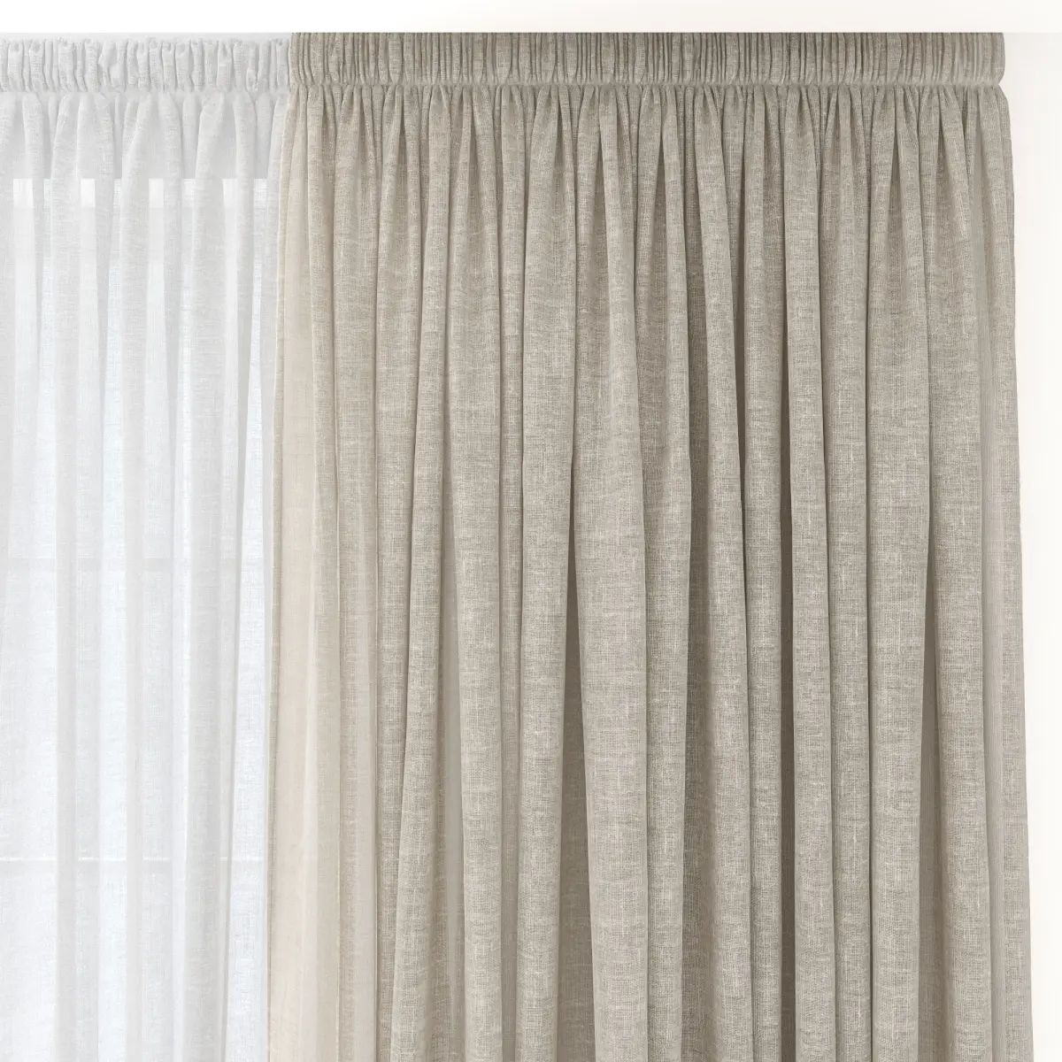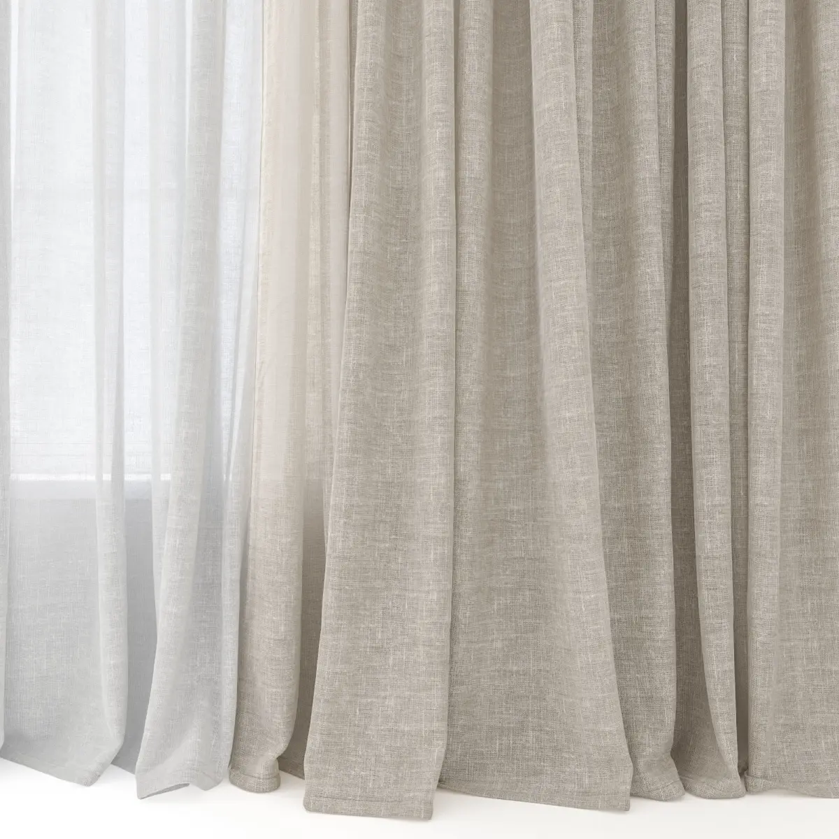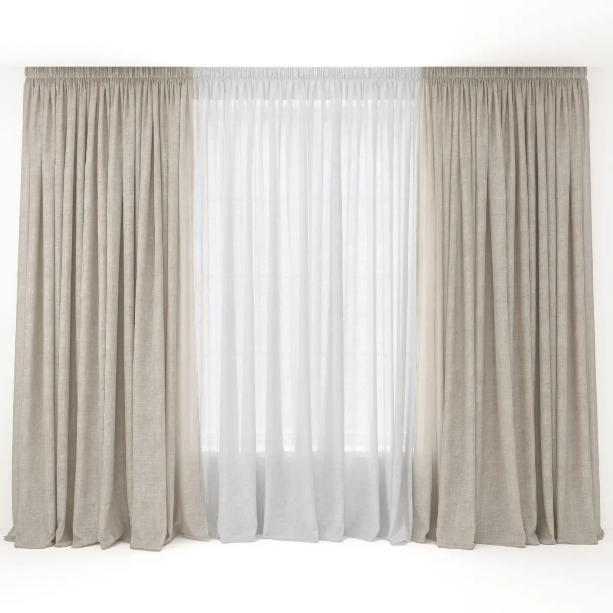 The file contains curtains and a window. The window is made in a simplified way.Overall dimensions: length 3550 mm, height 2870 mm.The size of the outer canvas is 1150 x 2870 mm.The size of tulle is 1880 x 2870 mm.Window size 1600 x 2200 h.