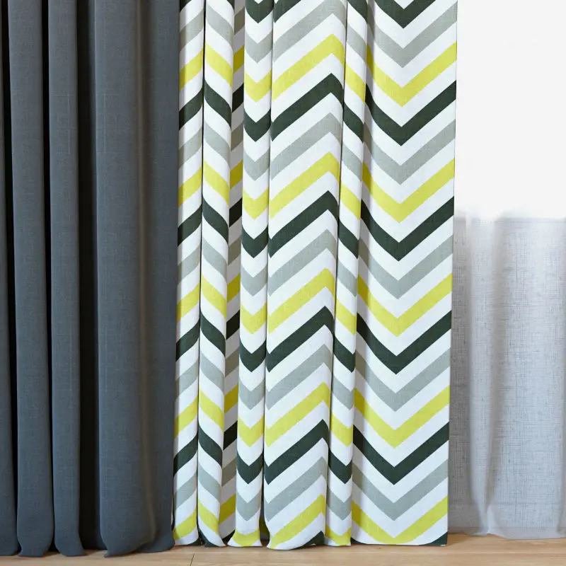 Curtains 71 | Curtains with Tulle | DIHIN HOME | Yellow Gray Black Stripes Printed