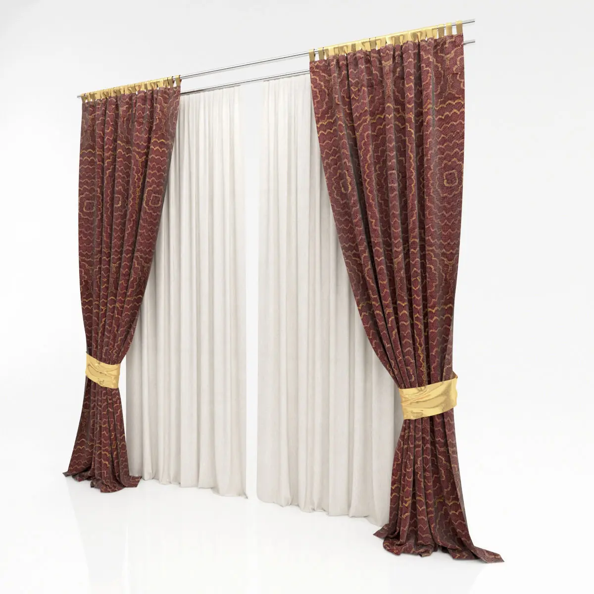 Curtains curtain with gold ribbons 3D model