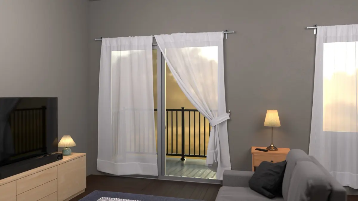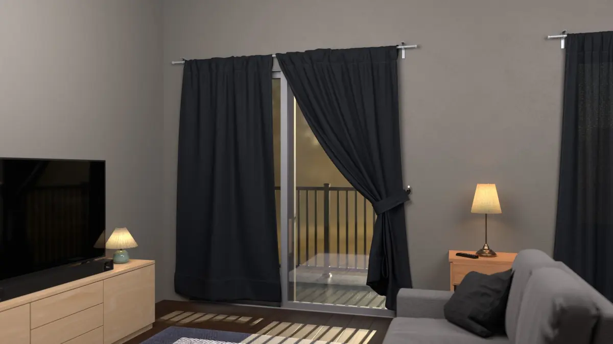 - Curtain 1: 1.87m x 0.149m x 2.17m