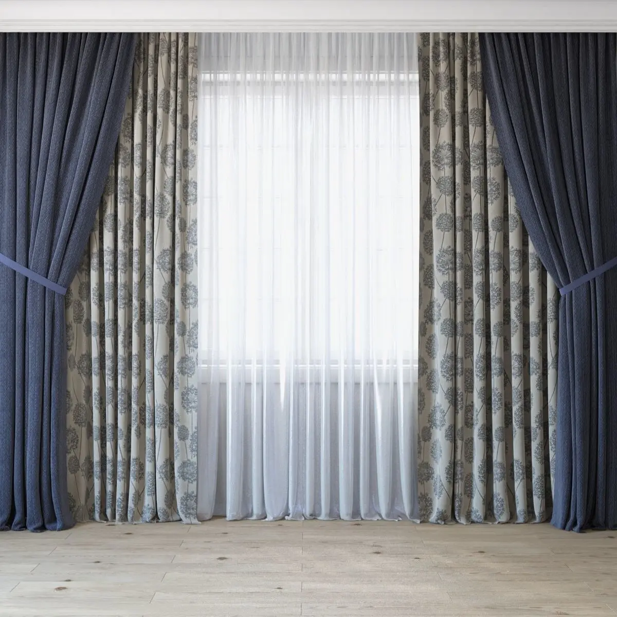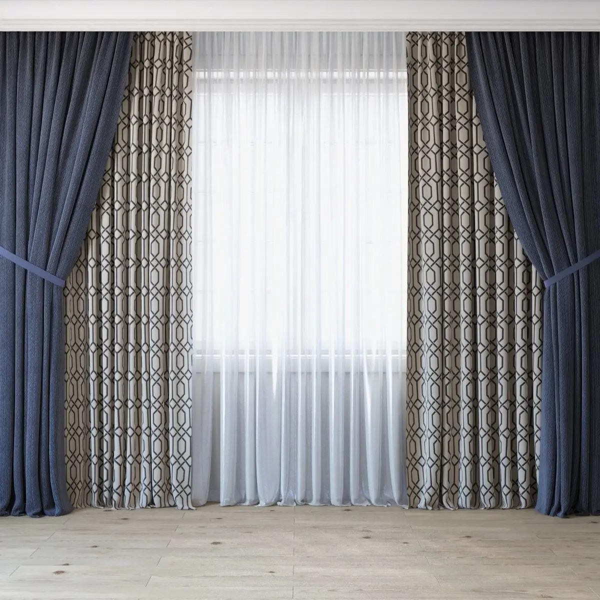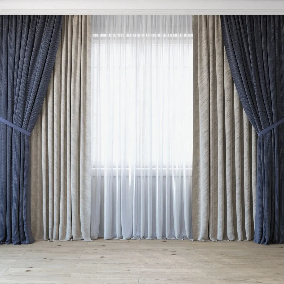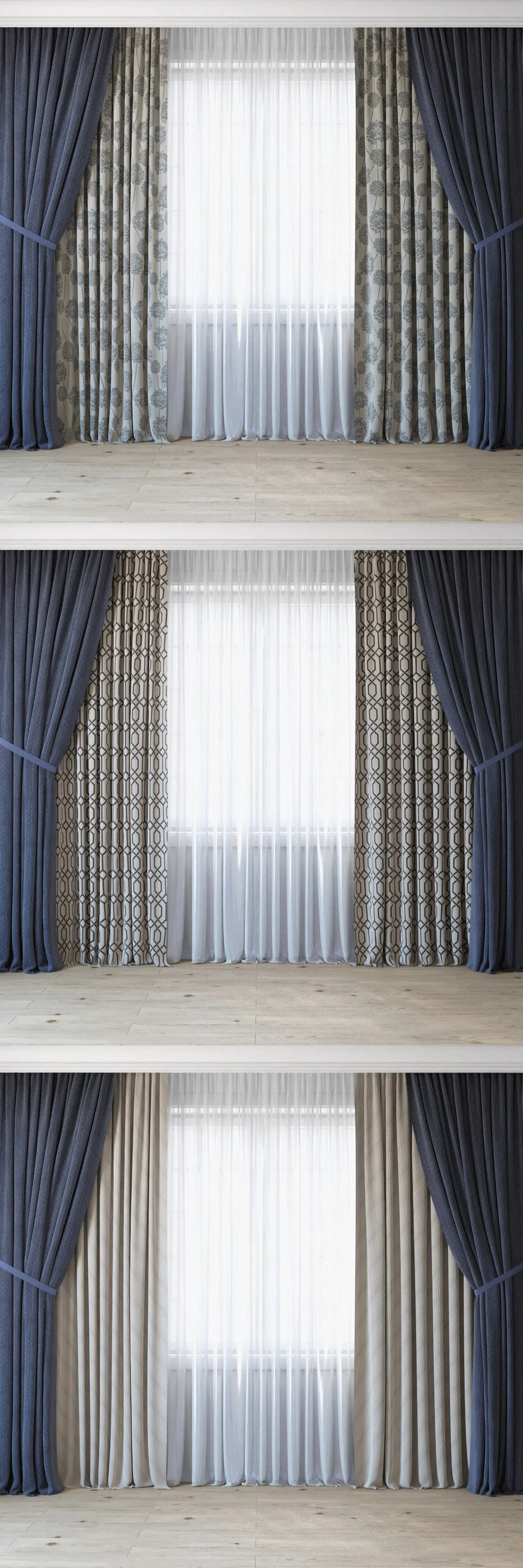 4 thick curtains with 3 different materials (see preview)