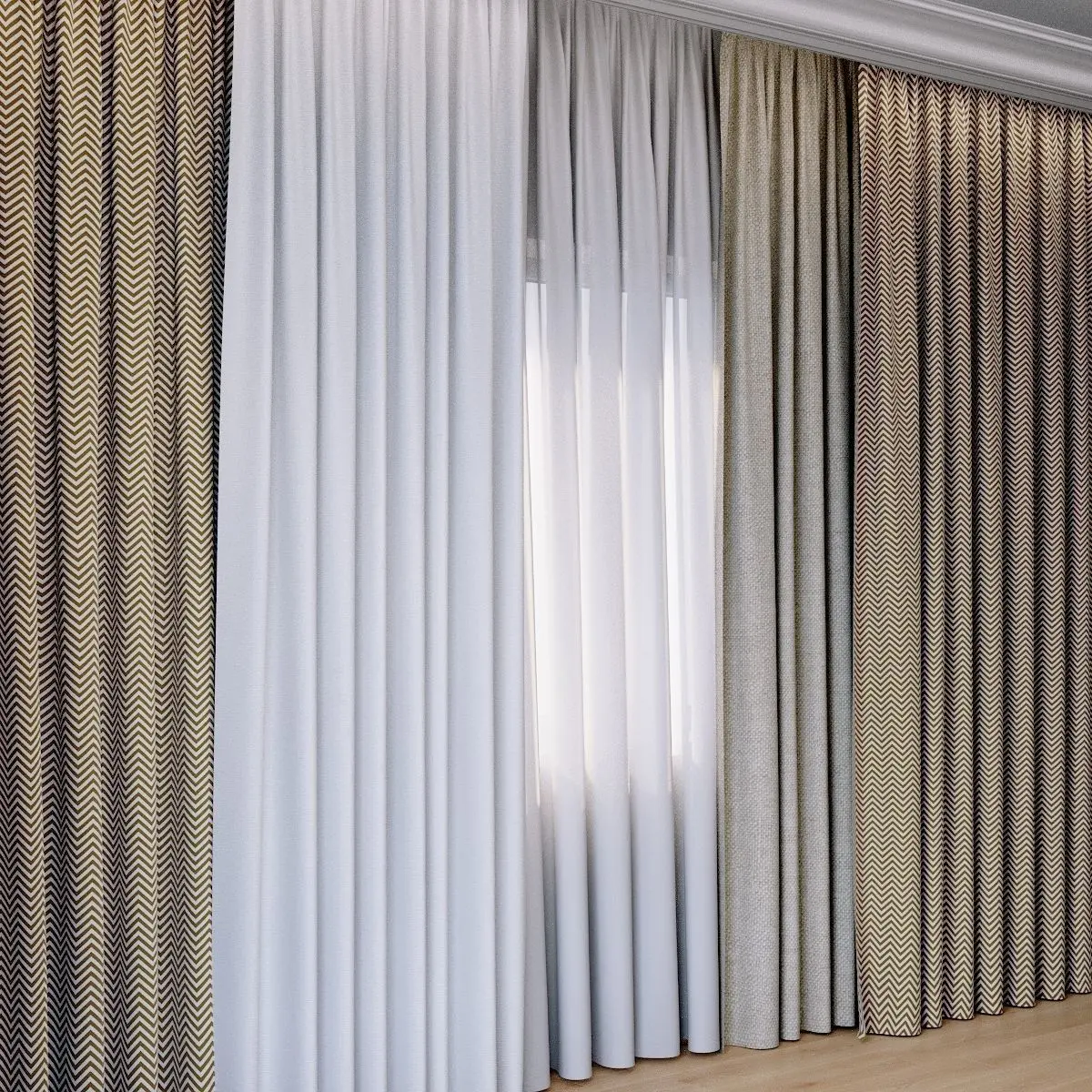 3 thick curtains with different fabric materials semi-transparent tulle All textures MAX 2014 (V-Ray 3.60.03) FBX_V-ray MAT_V-ray