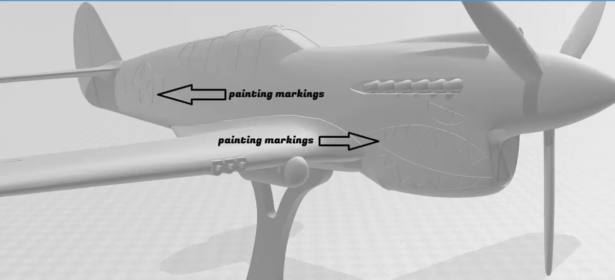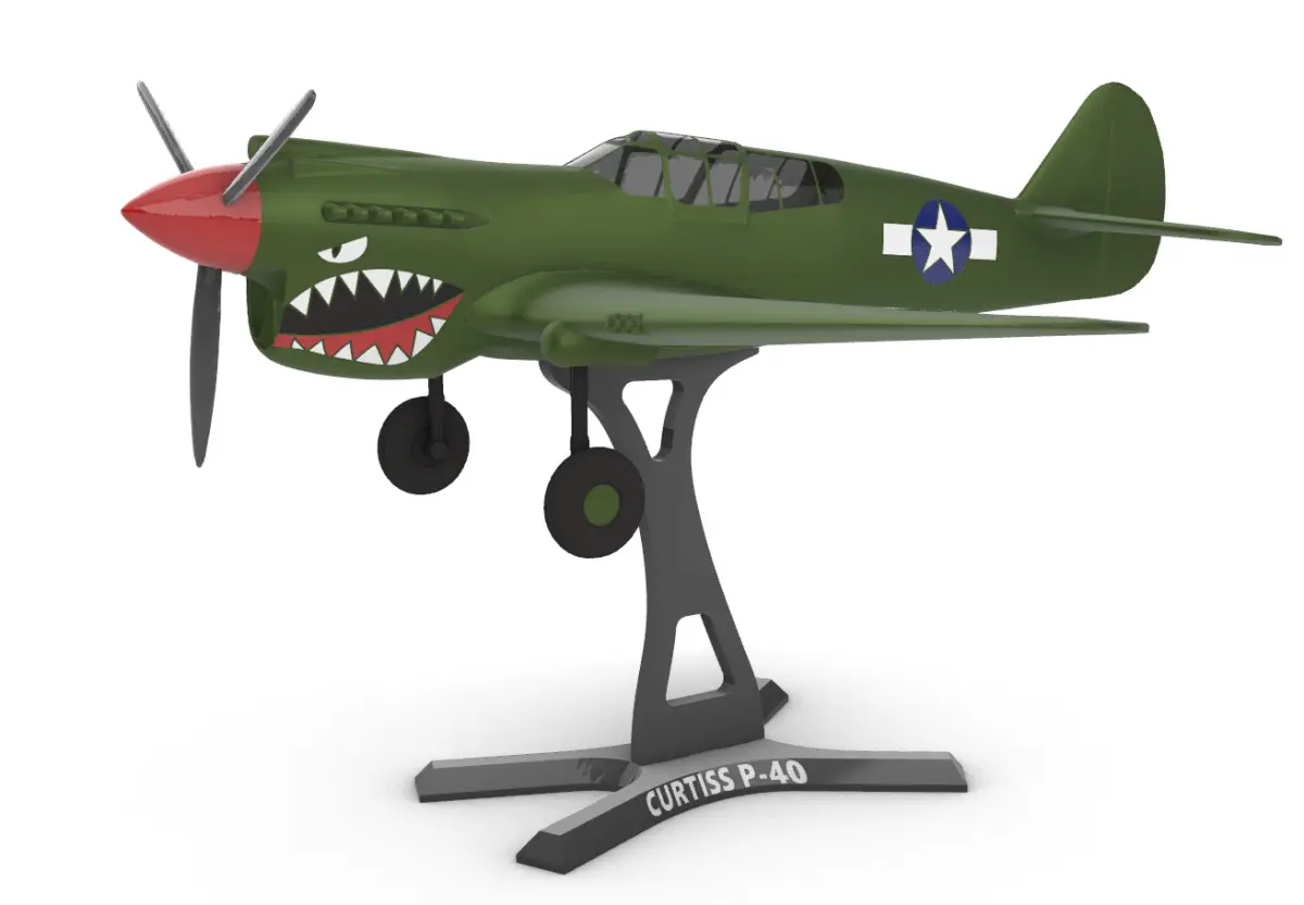 Model of the Curtiss P-40 divided into parts to facilitate printing.Polygonal high quality model. I left the model marked for painting