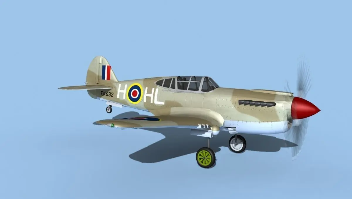 Curtiss P-40F is built near to scale and includes a lot of detail. The cockpit is well populated with seat, bullet proof shield, instruments, and controls as well as the exterior are complete with animateable flight controls. It also has an animated propeller, animateable landing gear and the canopy can slide open. The landing gear doors may be opened and closed. It is fully textured, and liveries are based on actual service liveries. Many of the countries who flew the plane are represented here. It can be used in an animated or static position within an animated video or possibly for programming for a flight simulation application. This model was not designed for 3d printing, these are digital files only. The models come in several formats.