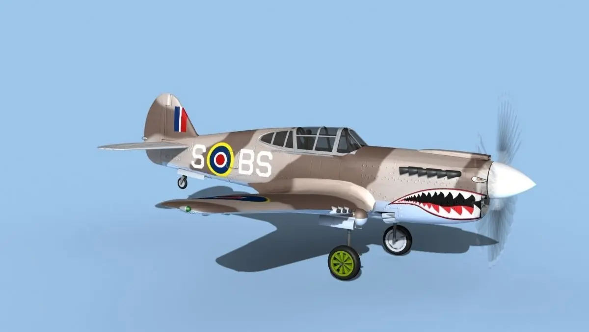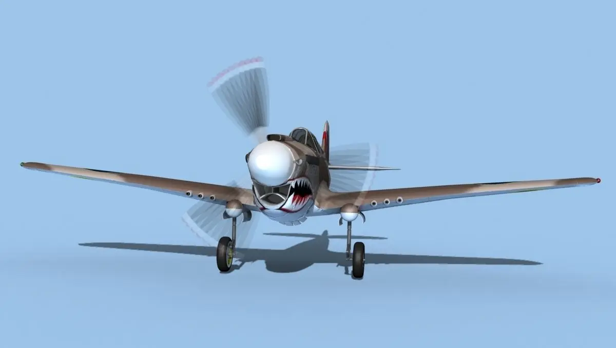 Curtiss P-40F is built near to scale and includes a lot of detail. The cockpit is well populated with seat, bullet proof shield, instruments, and controls as well as the exterior are complete with animateable flight controls. It also has an animated propeller, animateable landing gear and the canopy can slide open. The landing gear doors may be opened and closed. It is fully textured, and liveries are based on actual service liveries. Many of the countries who flew the plane are represented here. It can be used in an animated or static position within an animated video or possibly for programming for a flight simulation application. This model was not designed for 3d printing, these are digital files only. The models come in several formats.