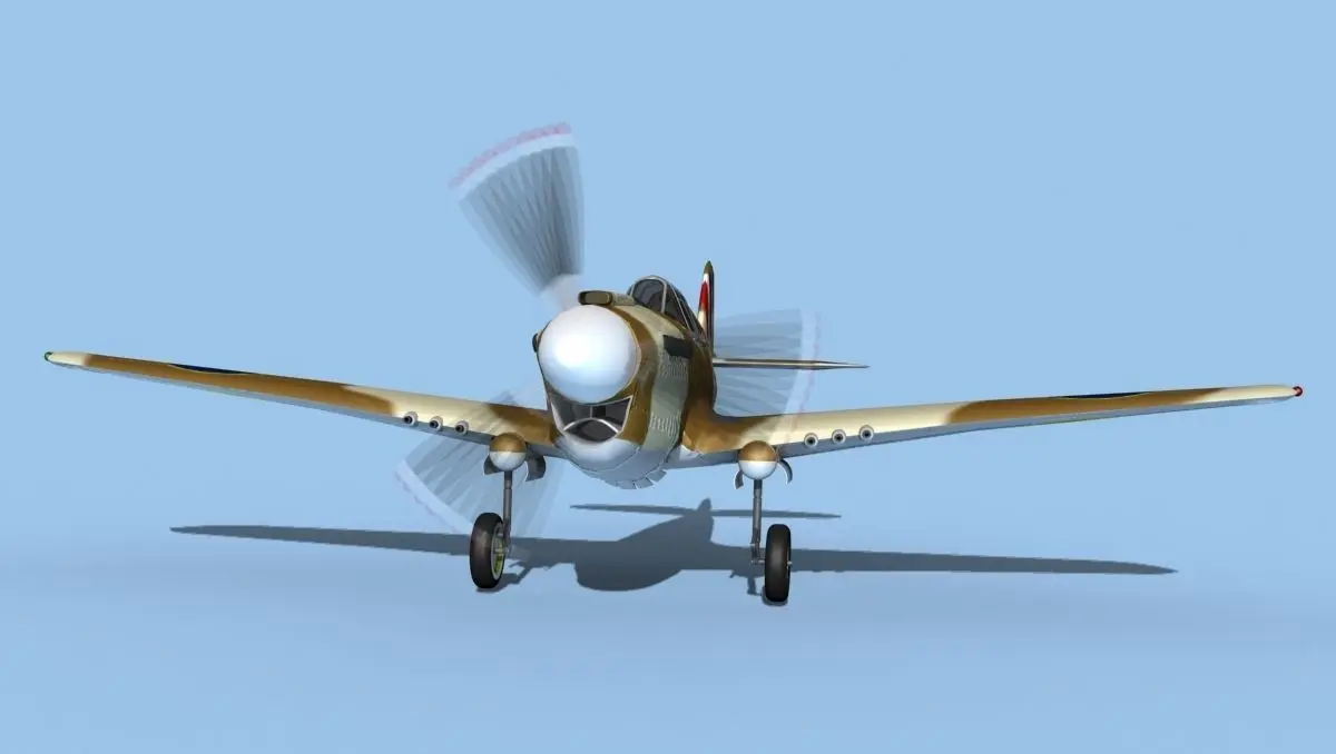 Curtiss P-40F is built near to scale and includes a lot of detail. The cockpit is well populated with seat, bullet proof shield, instruments, and controls as well as the exterior are complete with animateable flight controls. It also has an animated propeller, animateable landing gear and the canopy can slide open. The landing gear doors may be opened and closed. It is fully textured, and liveries are based on actual service liveries. There are 44 materials and textures used in this model. Many are as small as 200 x 200 pixels while others like wings are quite large at 2137x551 pixels. Textures are jpeg format in almost all cases. A Mtl file is included in the obj download.