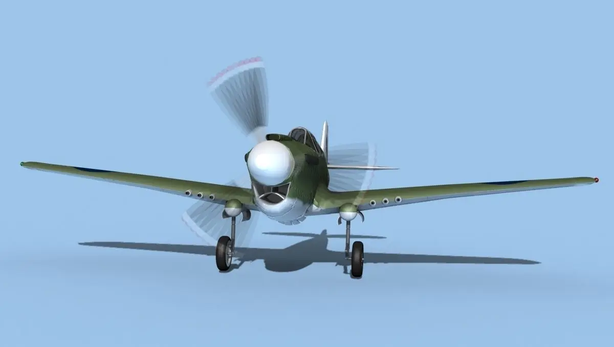 Curtiss P-40F is built near to scale and includes a lot of detail. The cockpit is well populated with seat, bullet proof shield, instruments, and controls as well as the exterior are complete with animateable flight controls. It also has an animated propeller, animateable landing gear and the canopy can slide open. The landing gear doors may be opened and closed. It is fully textured, and liveries are based on actual service liveries. There are 44 materials and textures used in this model. Many are as small as 200 x 200 pixels while others like wings are quite large at 2137x551 pixels. Textures are jpeg format in almost all cases. A Mtl file is included in the obj download.