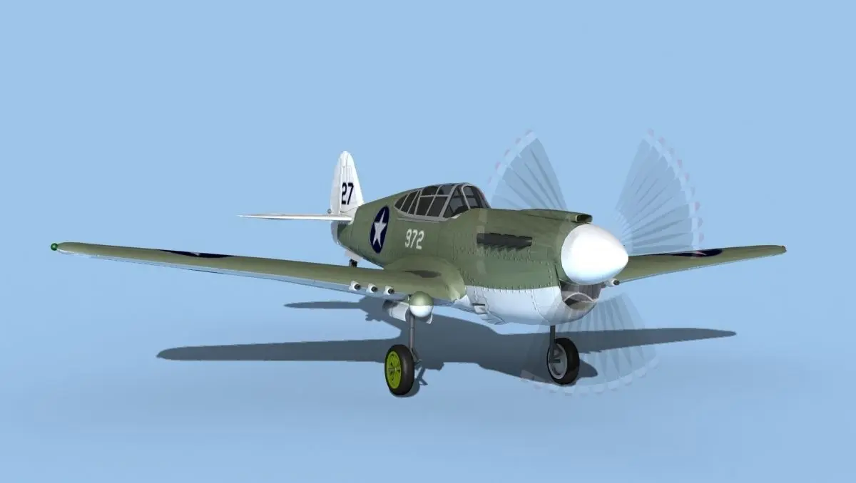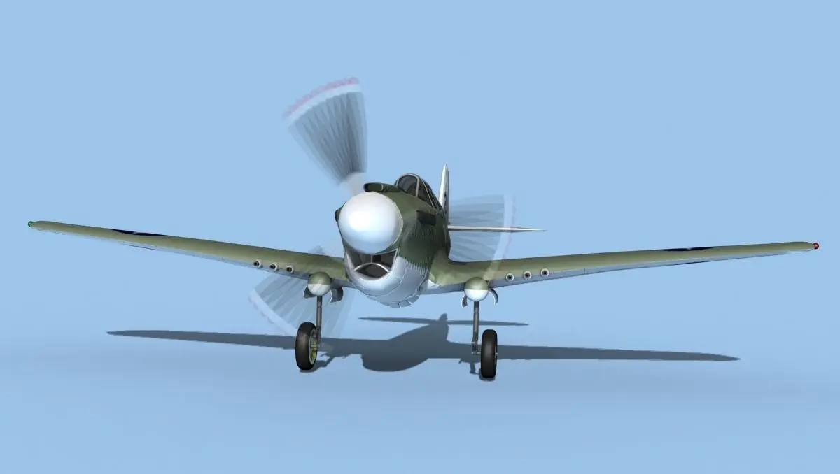 Curtiss P-40F is built near to scale and includes a lot of detail. The cockpit is well populated with seat, bullet proof shield, instruments, and controls as well as the exterior are complete with animateable flight controls. It also has an animated propeller, animateable landing gear and the canopy can slide open. The landing gear doors may be opened and closed. It is fully textured, and liveries are based on actual service liveries. There are 44 materials and textures used in this model. Many are as small as 200 x 200 pixels while others like wings are quite large at 2137x551 pixels. Textures are jpeg format in almost all cases. A Mtl file is included in the obj download.