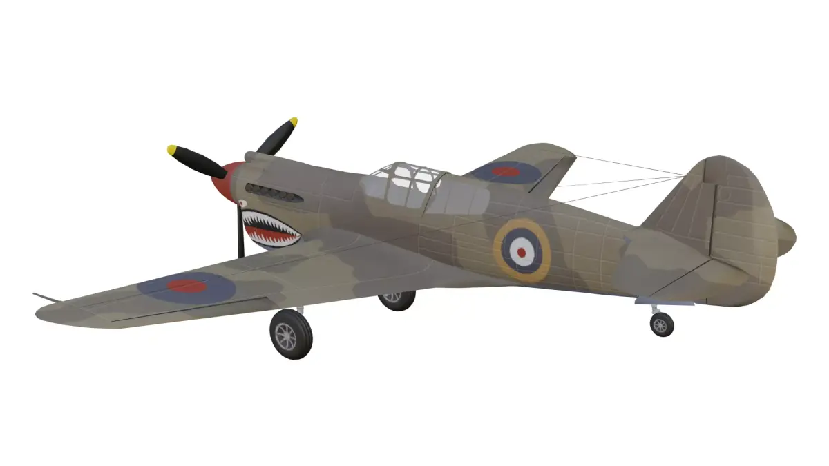The Curtiss P-40 Warhawk is a high quality, photo real model that will enhance detail and realism to any of your rendering projects. This model captures the aggressive, iconic silhouette of one of World War II's most famous front-line fighters. It features the signature shark mouth nose art, authentic Royal Air Force (RAF) desert camouflage livery, a detailed Allison V-1710 engine cowling, and a fully modeled cockpit interior.The model has a fully textured, detailed design that allows for close-up renders. Renders have no postprocessing.