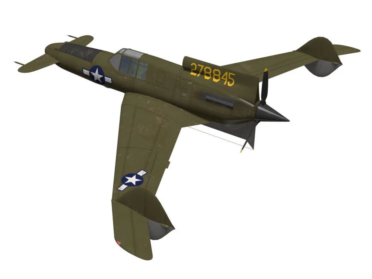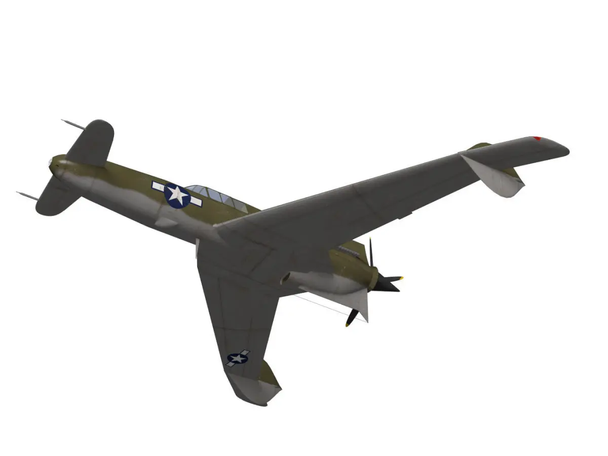 The Curtiss-Wright XP-55 Ascender was a prototype fighter aircraft built by Curtiss-Wright during WW2.The representation of the inside of the fuselage is simple modeling.The texture of the original data may have been changed due to exporting.Landing gear of the model is divided into flight state and landing state parts.The other parts of the operating parts are separated. However, please note that the rig is not reflected.This model is not intended for use in games or other low-polygon applications.This model is not intended for 3D printing.Please be careful when purchasing.
