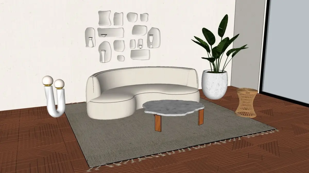 A curved seat and wall niches. An enjoyable relaxation area model designed with Sketchcup. The model is available in many different formats. 3 jpeg and 3 png each have been added to the file. The model comes to your screen with 4 sides closed.