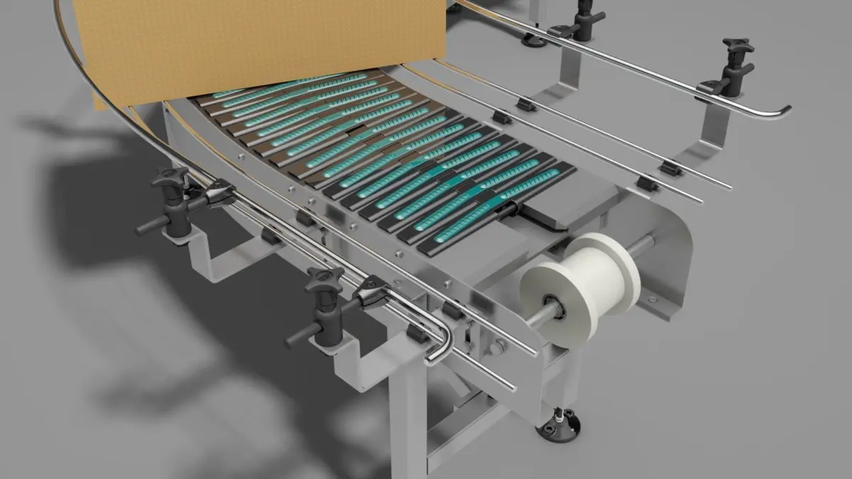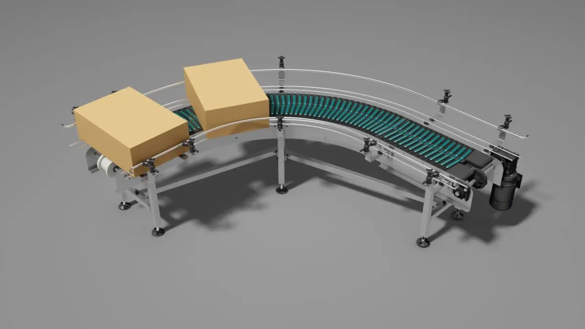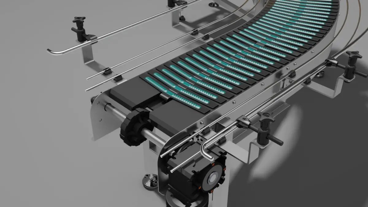 Curved conveyor belt made of plastic belt