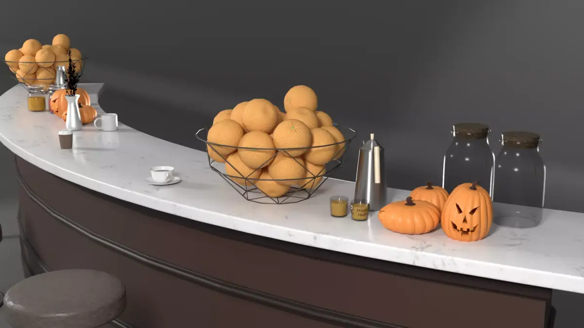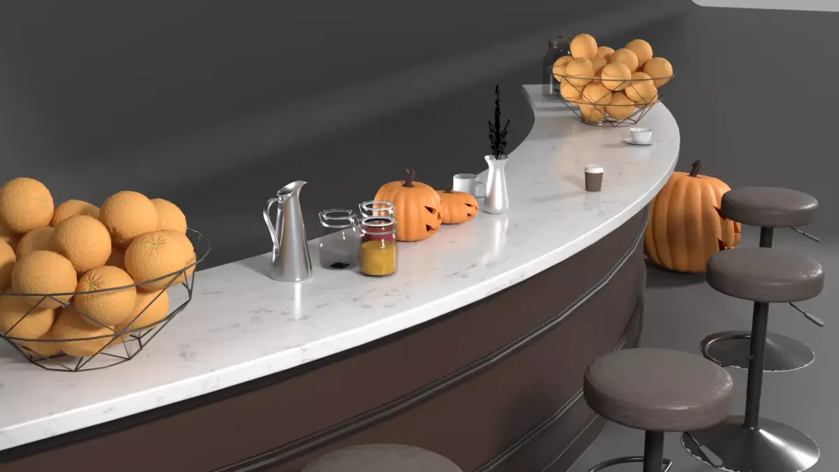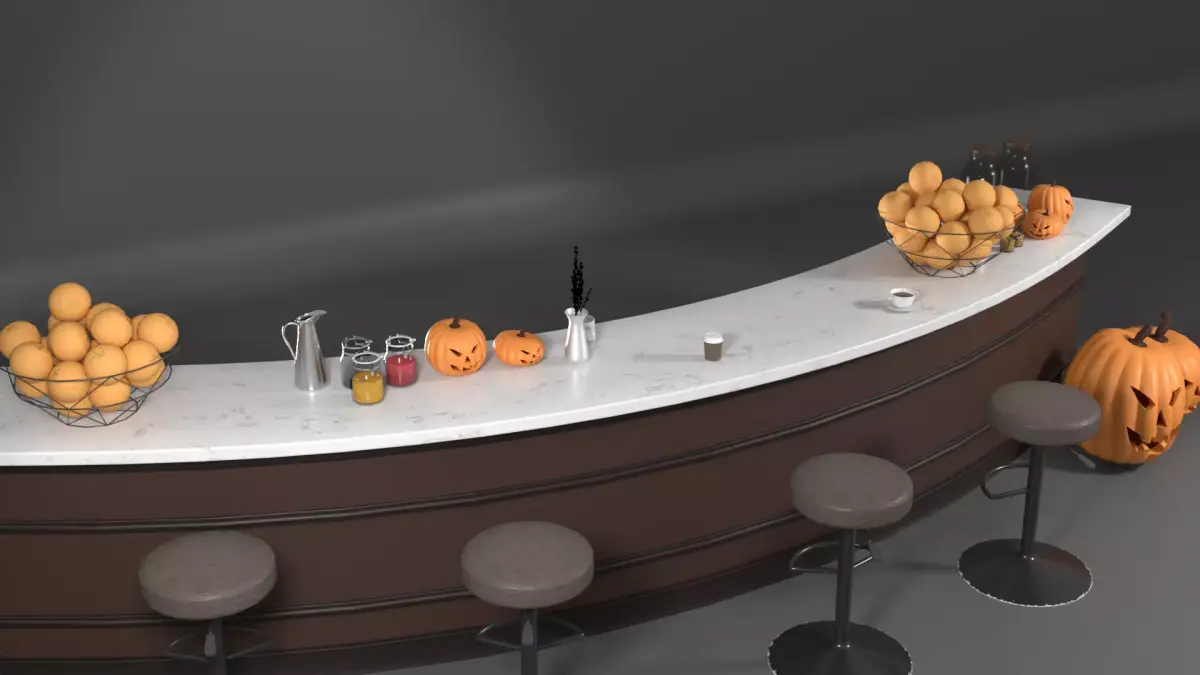 This 3D model represents a Curved Cafe Counter with Halloween Props, ideal for scenes featuring cafe, bar, restaurant in commercial or domestic environments.Designed for architectural visualization, game development, and virtual production, it offers high-quality detail with true-to-life scale.