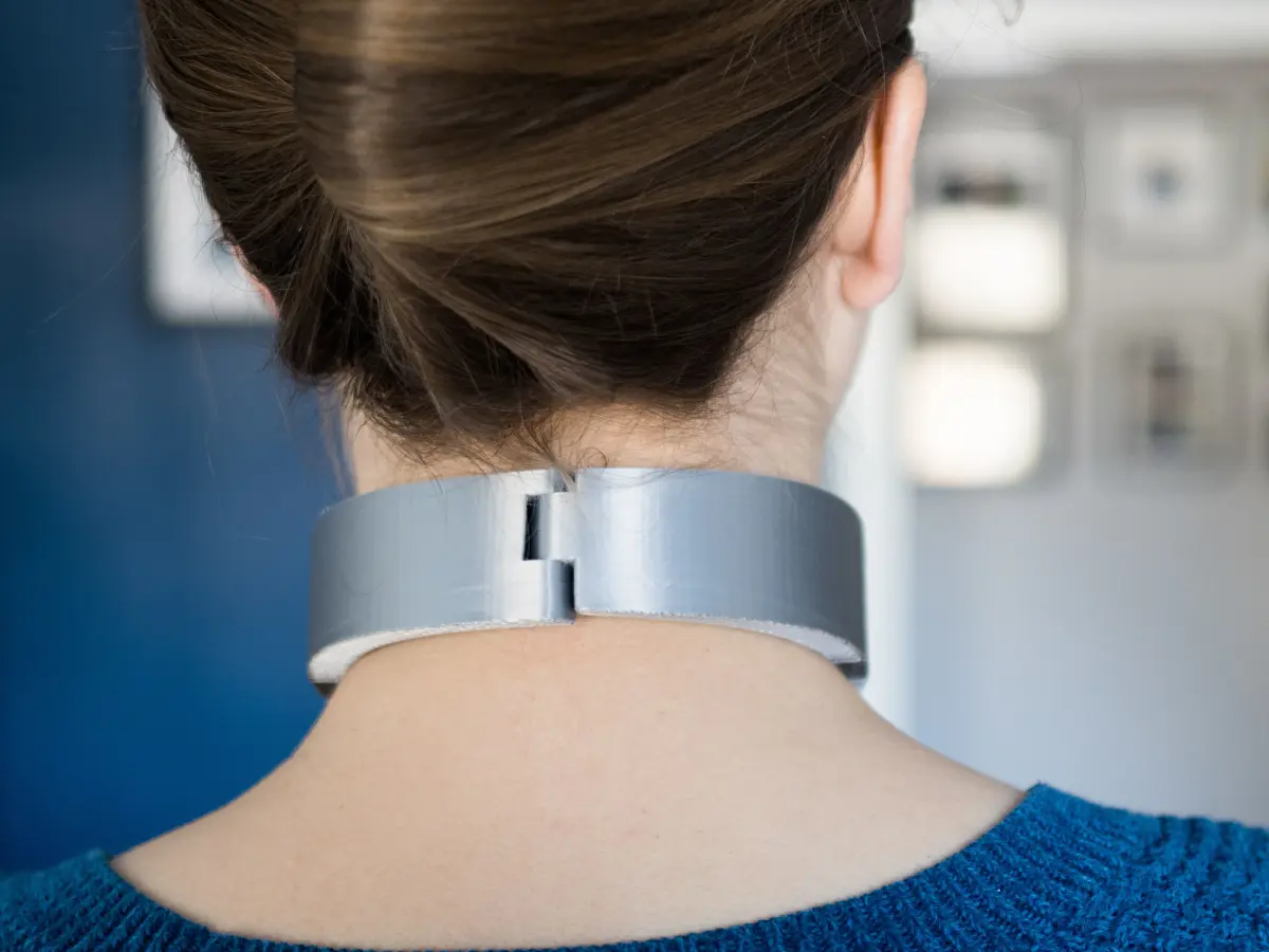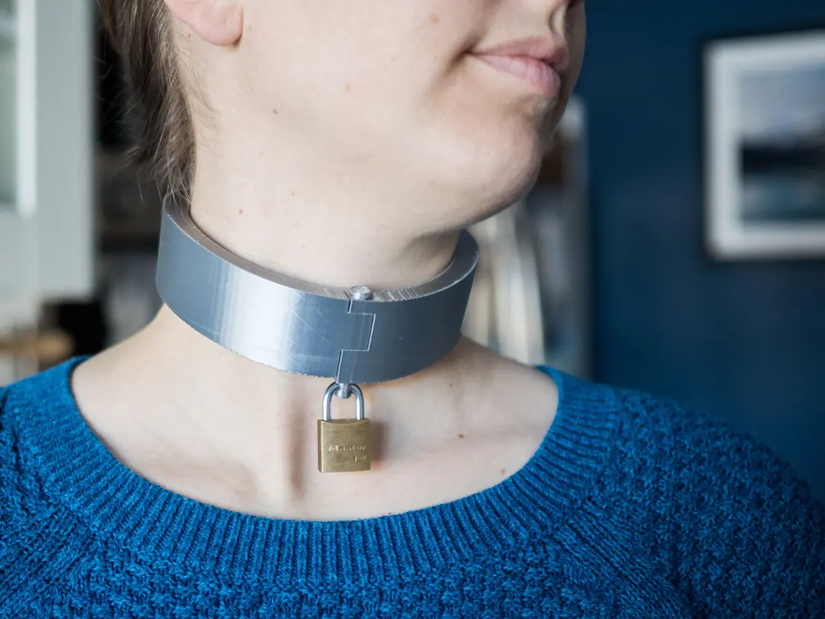 A large, functional and easy to print collar. The collar is curved for looks and comfort. The included zip has ten sets of .stl files, for neck circumferences from 11 to 19 (30-44cm). Simply measure the circumference of the wearer's neck and choose the next size up to print. The files will print easily on a bed at least 220 x 220mm. My example collar pictured was printed in silver silk PLA at the 13.5" size.