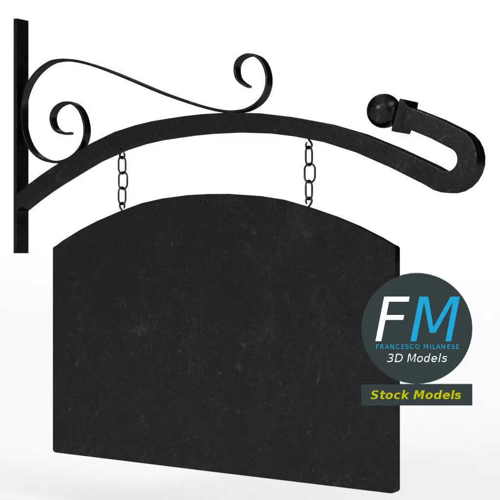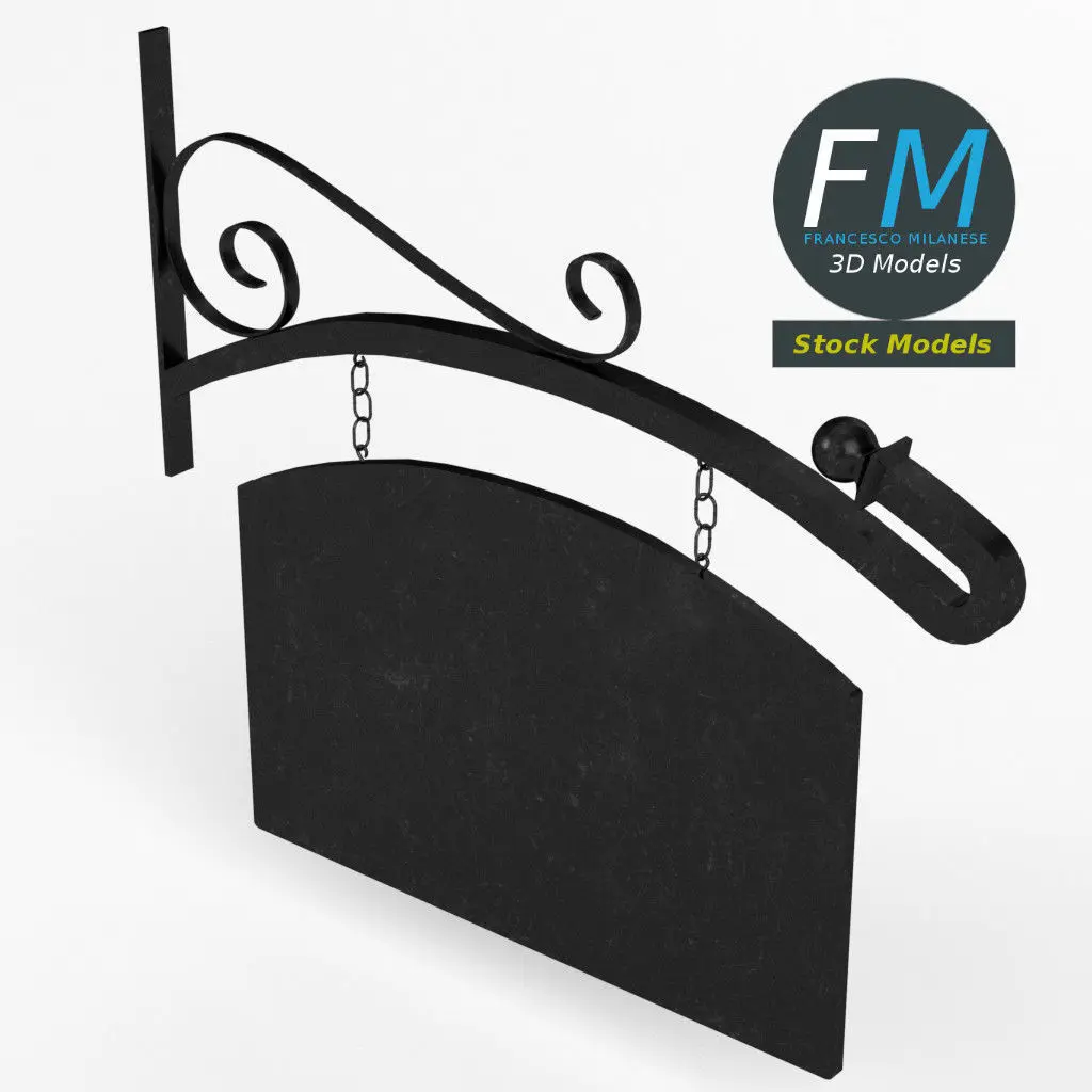Curved hanging sign 3D Model. Production-ready 3D Model, with PBR materials, textures, non overlapping UV Layout map provided in the package.