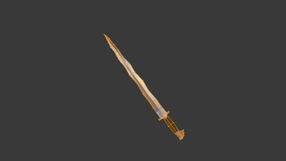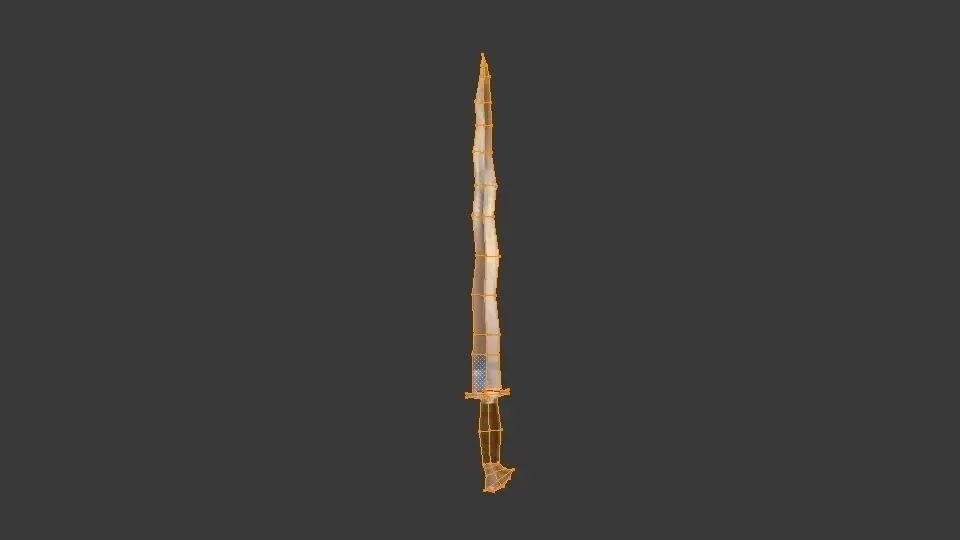 A simple low poly (84 faces 160 triangles) curved knife, called Kris with a single 1024x1024 diffuse texture. Normalmap texture of 1024x1024 size is also provided in the textures archive. Native format is Blender. Scale in Blender - approx. 70cm length (27 inches). Origin at world center and at middle of knife handle for easy positioning in character's hand. Blend file has textures packed. Previews are in app (Blender) views. Last preview is a sample screenshot from Unreal Engine. Model of goblin is for scale and is not included.