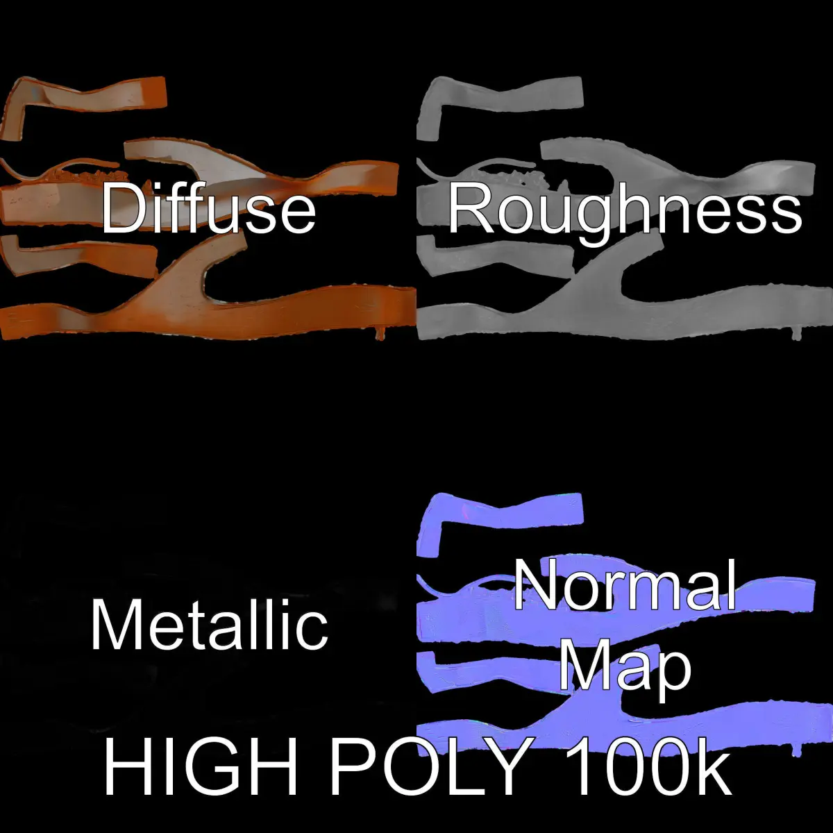 Explore the elegance of this Curved Metal Ribbon Sculpture model pack, offering three levels of detail: low-poly (1000 triangles), middle-poly (10,000 triangles), and high-poly (100,000 triangles). Perfect for production rendering, game engines, and interactive presentations, this model provides versatility and detail selection through the LOD System principle. With PBR textures, including Diffuse, NormalMap, and reflection/roughness/metallic, it suits modern rendering engines seamlessly. The model is perfectly unwrapped with no overlapping UVs. Textures are 4096*4096 in size, enhancing the realism and quality. This sculpture model is ideal for architectural visualizations, art installations, virtual galleries, and contemporary design projects.