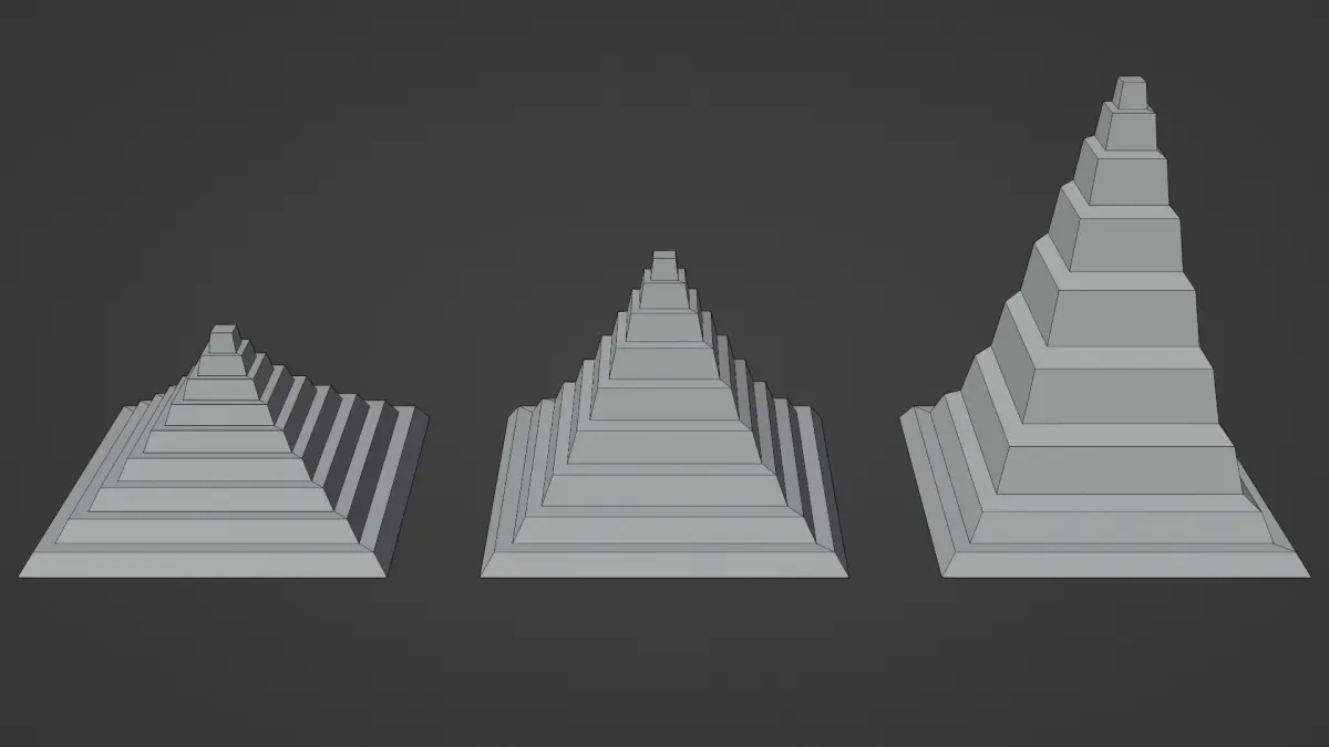 I first made small one which is the original shape and then made 2 other taller version with a proportional scale tool, a medium one which just a little bit higher than the original and the taller at the right which looks like some ancient building shape. You can easily modify it by yourself to get other proportions.