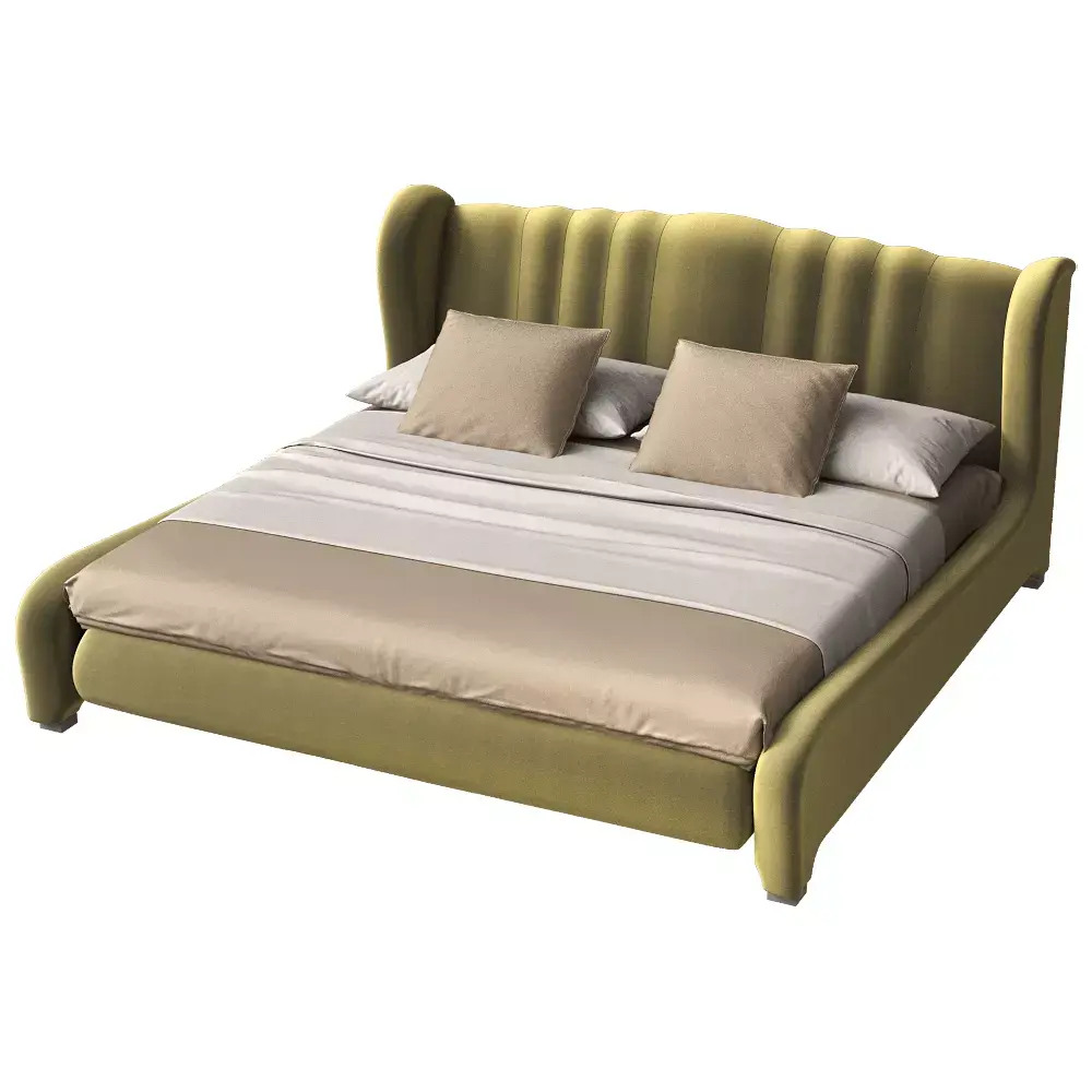 Product: Curved Wingback Upholstered Bed 3D Model