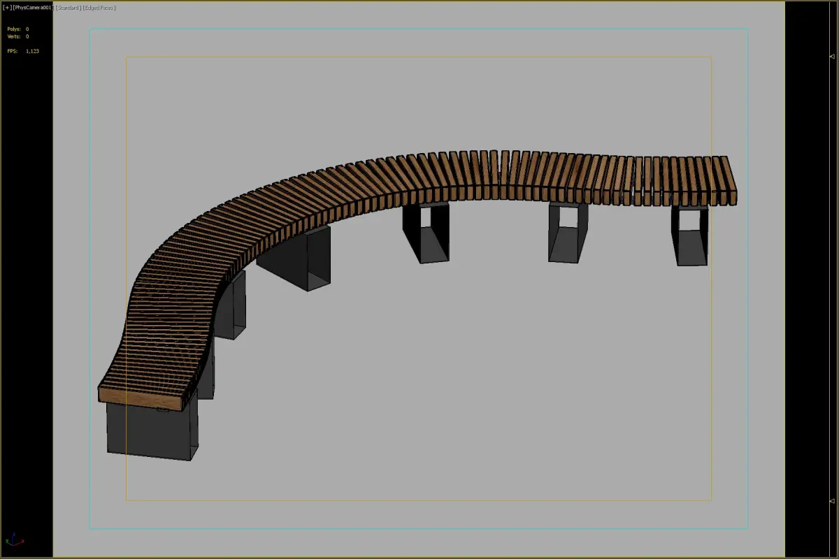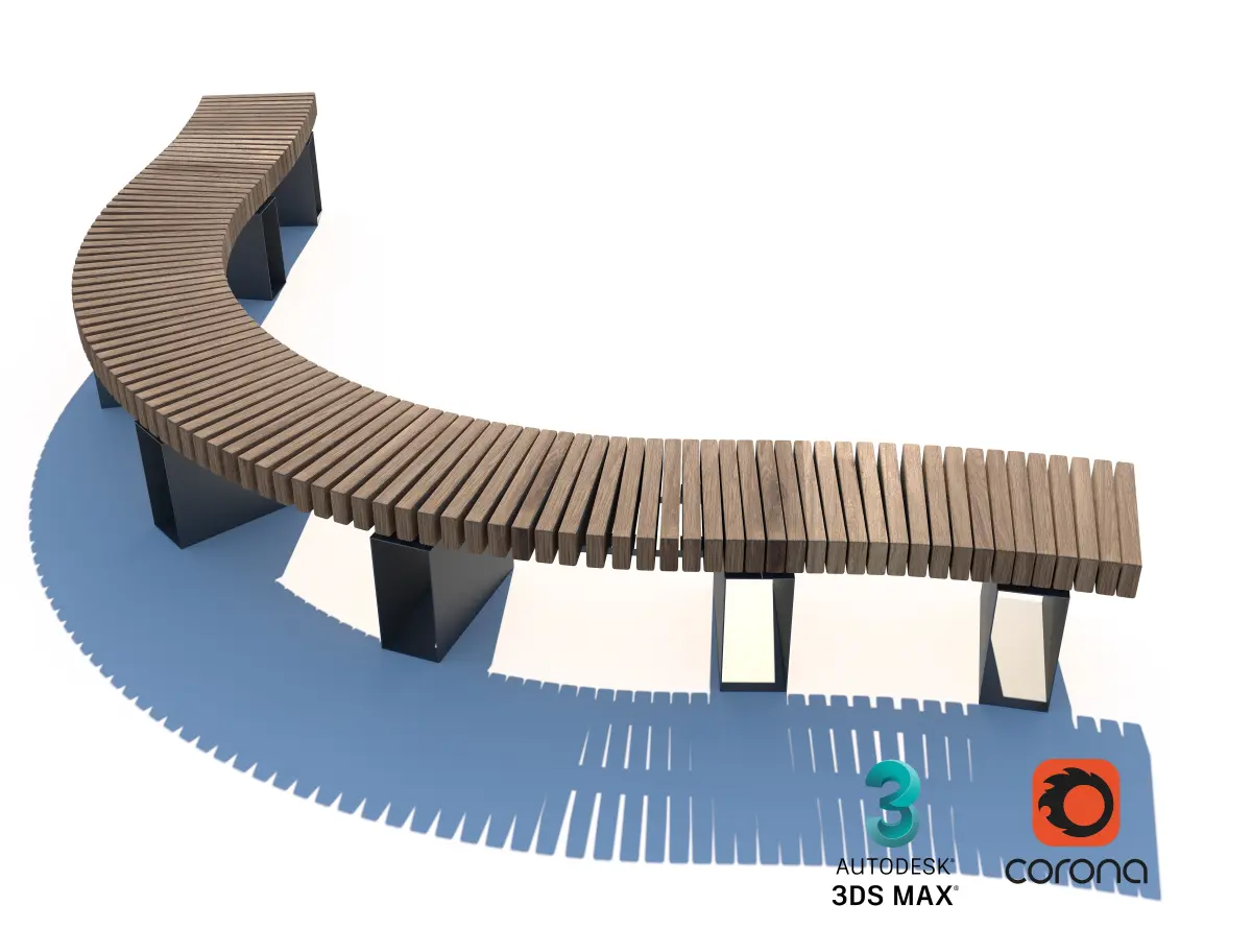 Elegant curved wooden bench, ideal for urban parks and community spaces. Designed to enhance outdoor environments with a modern, modular aesthetic.