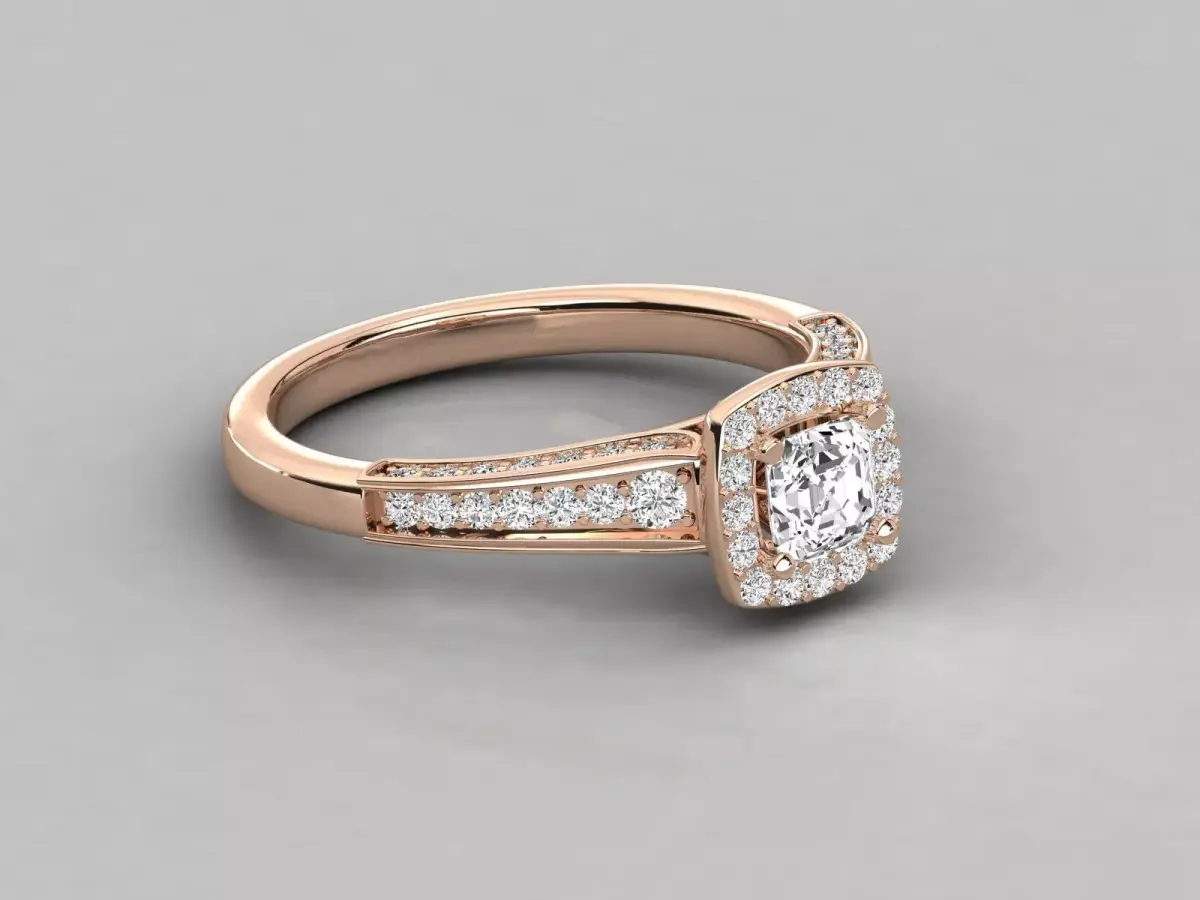 This premium cushion halo diamond engagement ring CAD design is created for high-end jewellery manufacturing with a perfect balance of elegance and durability. The design features a beautifully proportioned cushion-cut center stone surrounded by a refined halo setting that enhances brilliance and visual depth. The shank is accented with precisely placed micro pave diamonds, providing a luxurious sparkle from every angle.