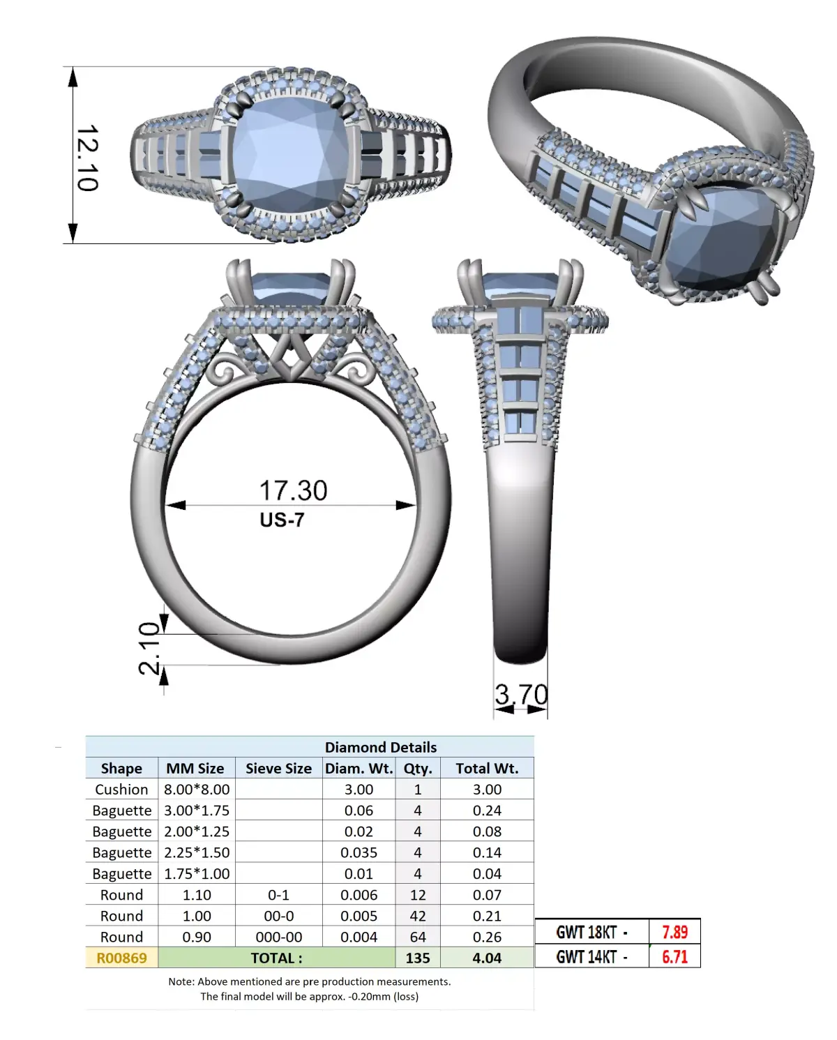 The elevated gallery structure provides excellent light performance while ensuring a strong and production-ready construction. Attention has been given to stone placement accuracy, prong security, band proportions, and comfort-fit shaping to guarantee both visual appeal and practical wearability.