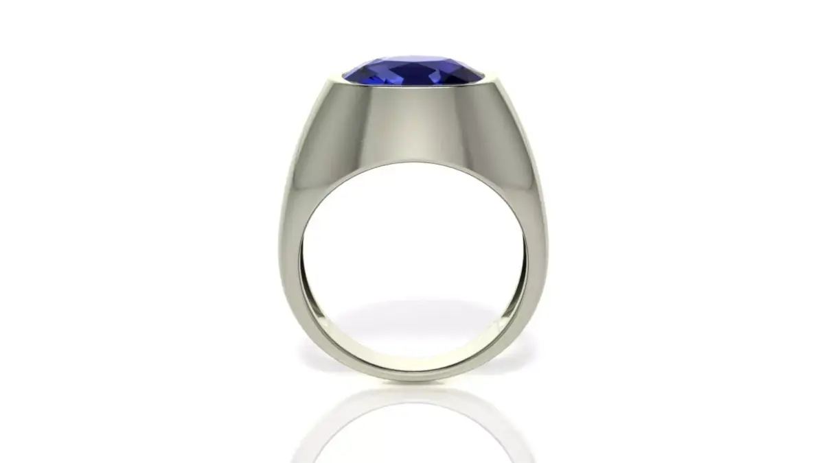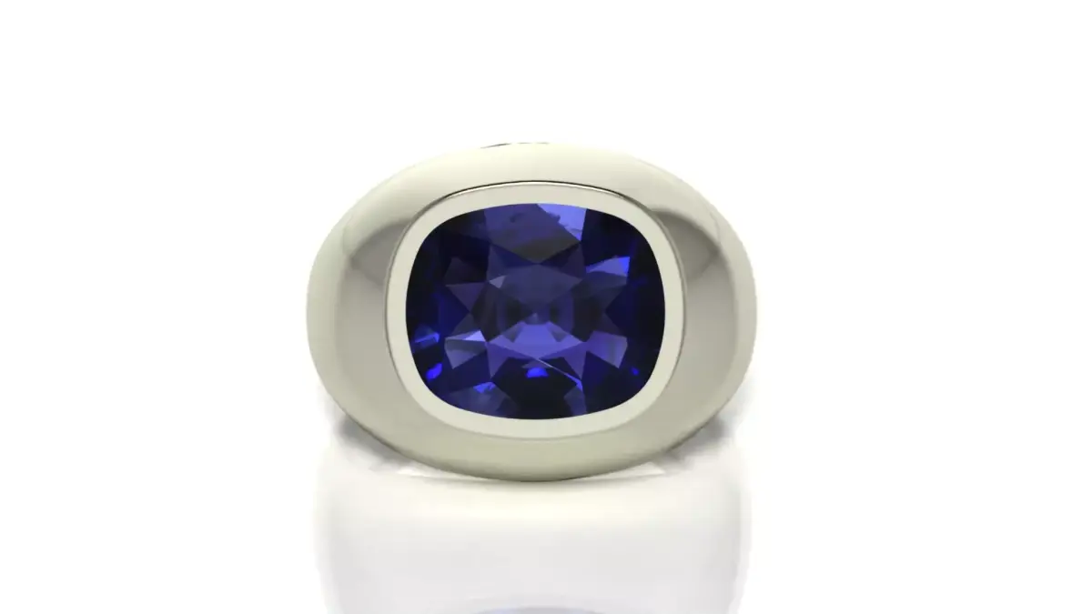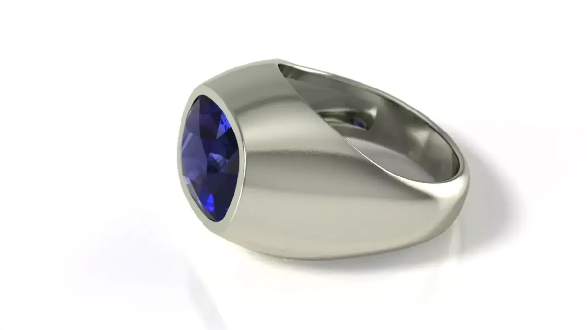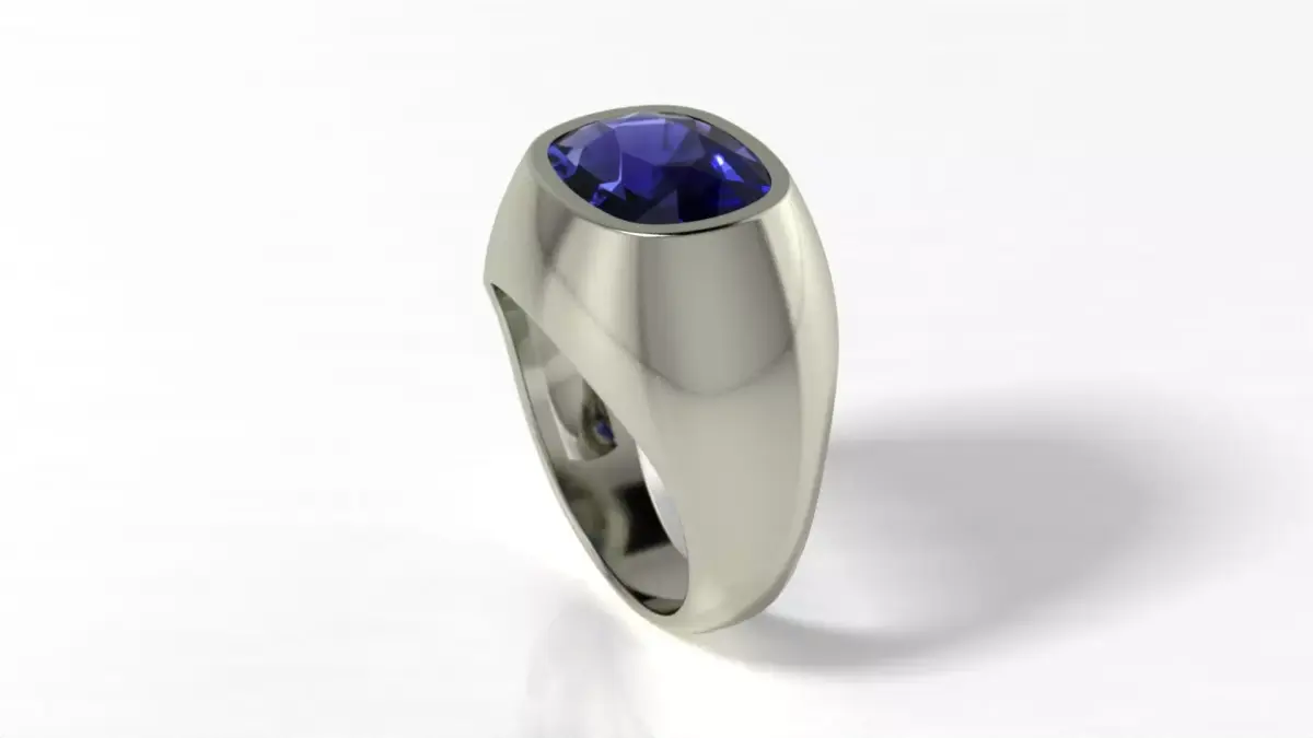 A cushion-shaped ring with precious stones. The ring size is 19 mm or 9 US. The weight is 8.54 grams 10K; 9.61 grams 14K; 11.5 grams 18K; 13.35 grams 22K. The metal thickness is 0.75 mm. The edge that fits the finger is 1.2 mm. This will ensure comfortable wearing even after rough grinding. The 3D model is fully functional and ready for 3D printing. The design is suitable for both men and women.